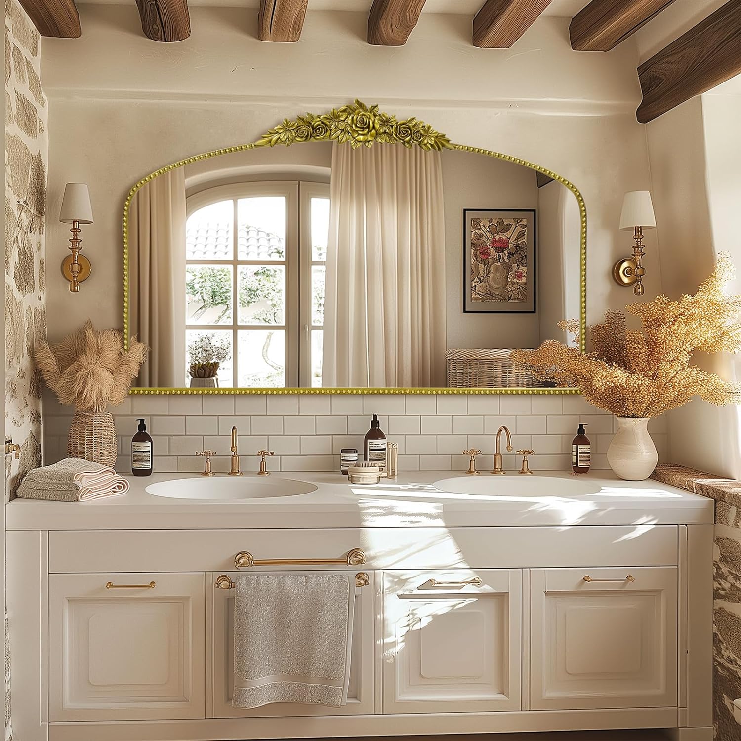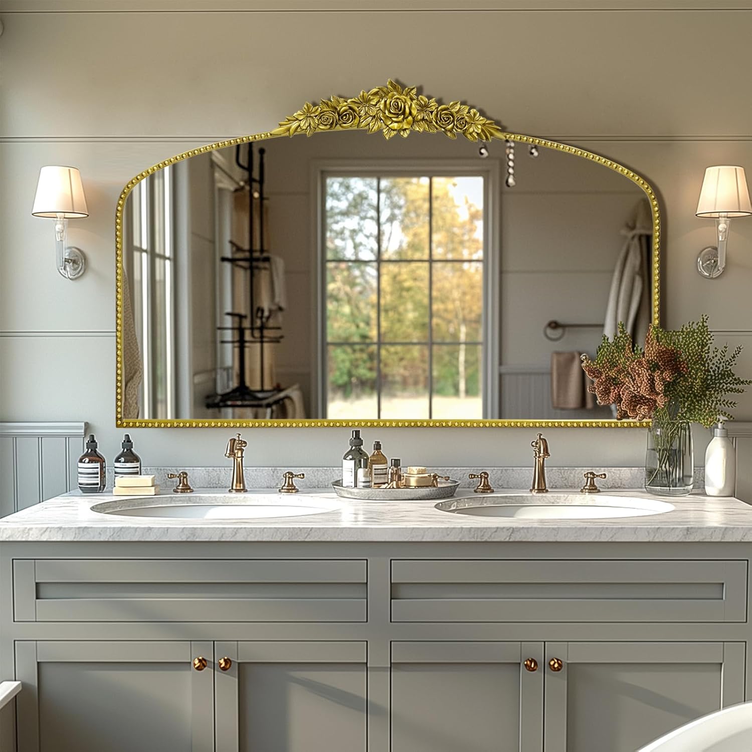 - 【HIGH QUALITY WALL MIRROR】The 48 x 30 inch vintage mirror frame is made of high quality metal, cast iron vintage engraved patterns, hand polished to make the vintage arched large wall mirror smooth and flat. The metal frame not only adds to the aesthetics, but is also strong, rust-resistant, and resists warping, making the arched wall mirror surface less prone to damage.