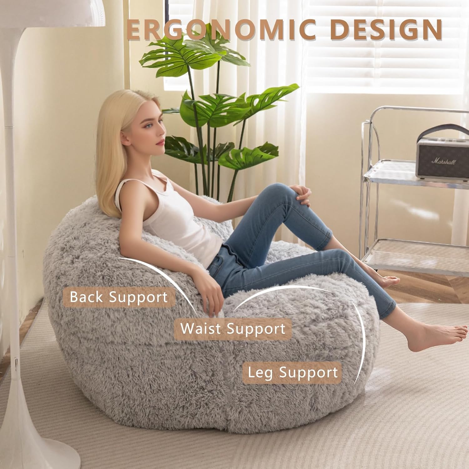 BYBYME Giant Bean Bag Chair, Faux Fur Bean Bag Couch with Filler Large Living Room Bean Bag Chairs for Adults, Big Lazy Sofa Accent Chair with Pocket Floor Chair