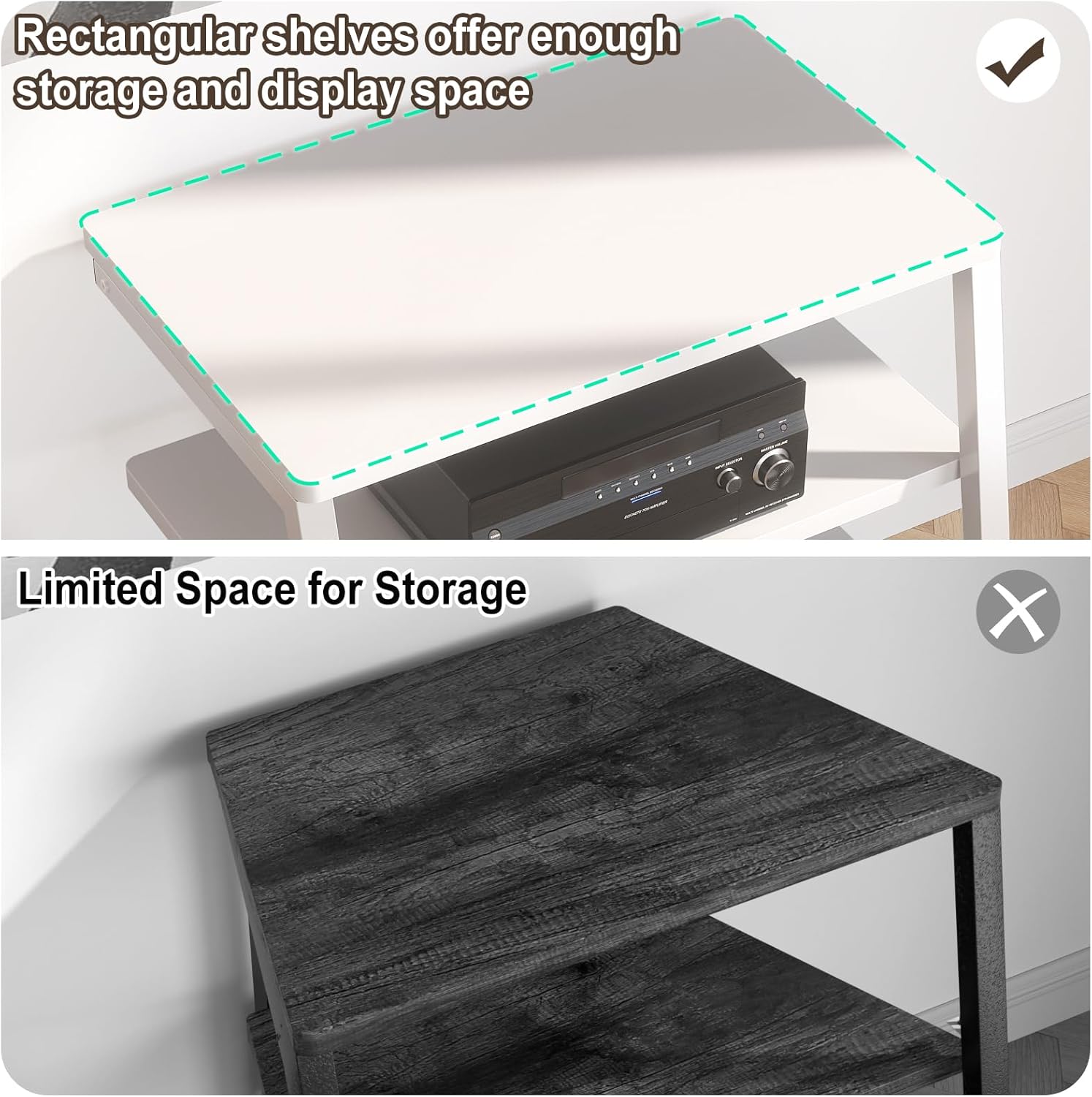 - Large Accommodation - 23.6'' wide shelf boards that this media stand has offer you enough space to place your stereo equipment. The open construction and 4-tier adjustable shelves will make your setup easier and more convenient. The open construction also means that your electronics aren't going to overheat, because air is circulating freely all the time. Plenty of clearance for gaming consoles, DVD players, a cable box, a sound system woofer, and a CD changer.