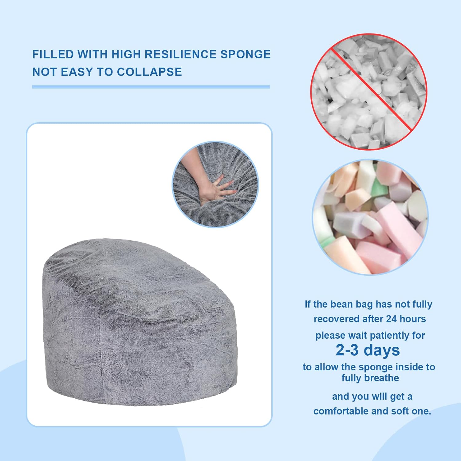 Recaceik Bean Bag Chair Large Bean Bag Chairs, with Fluffy Removable Spongefor, for Living Rooms, bedrooms, Study Rooms, and Offices
