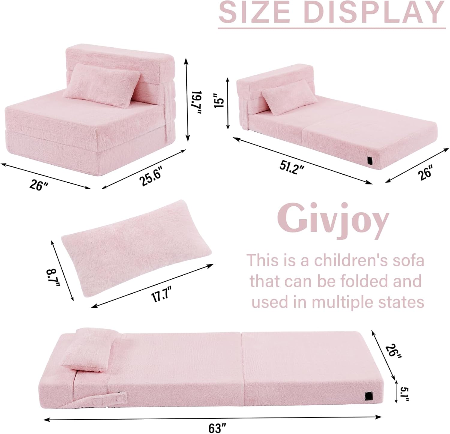 - 【Kid's Folding Chair Bed Requires No Assembly】The kids folding mattress is in vacuum packing. Open the Kids Couch packaging and you will get a soft plush Sofa for your kids. Please allow 4-5 days for the kids sofa couch to take on its original shape or use a clothing steamer to restore its thickness and remove creases quickly.