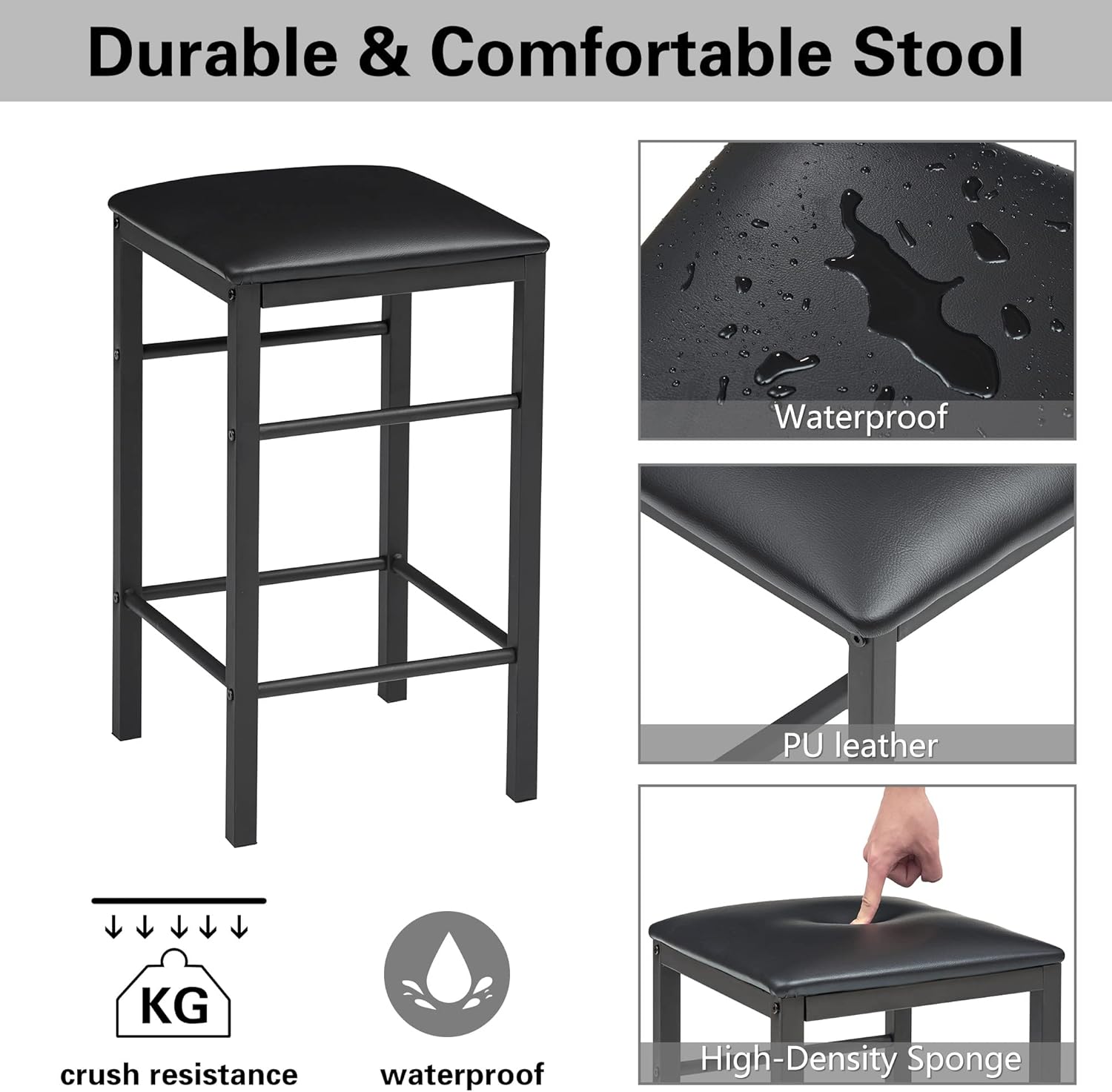 - Space-saving: Stool seat is padded with sponge and covered with PU leather,can be tucked under the high table to save space.The table and chair panel is waterproof and easy to clean, all you need to do is just wipe it with a damp cloth.