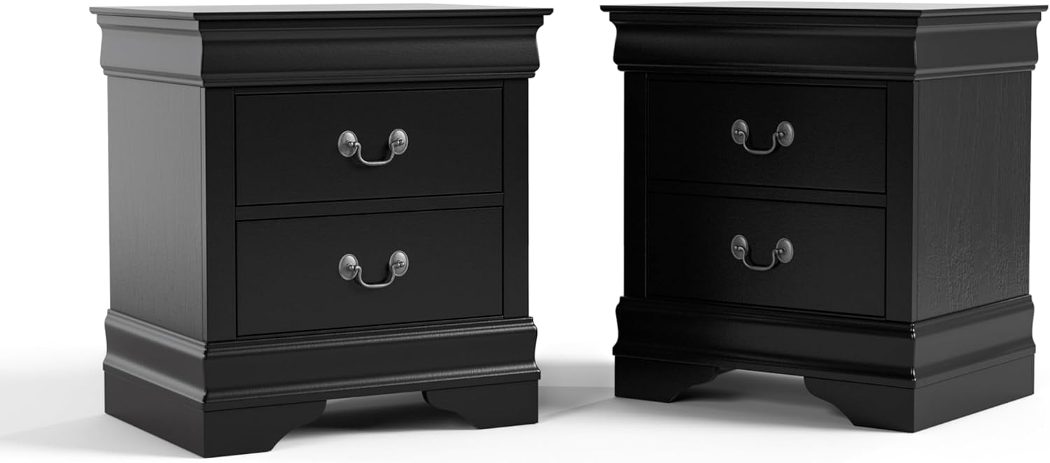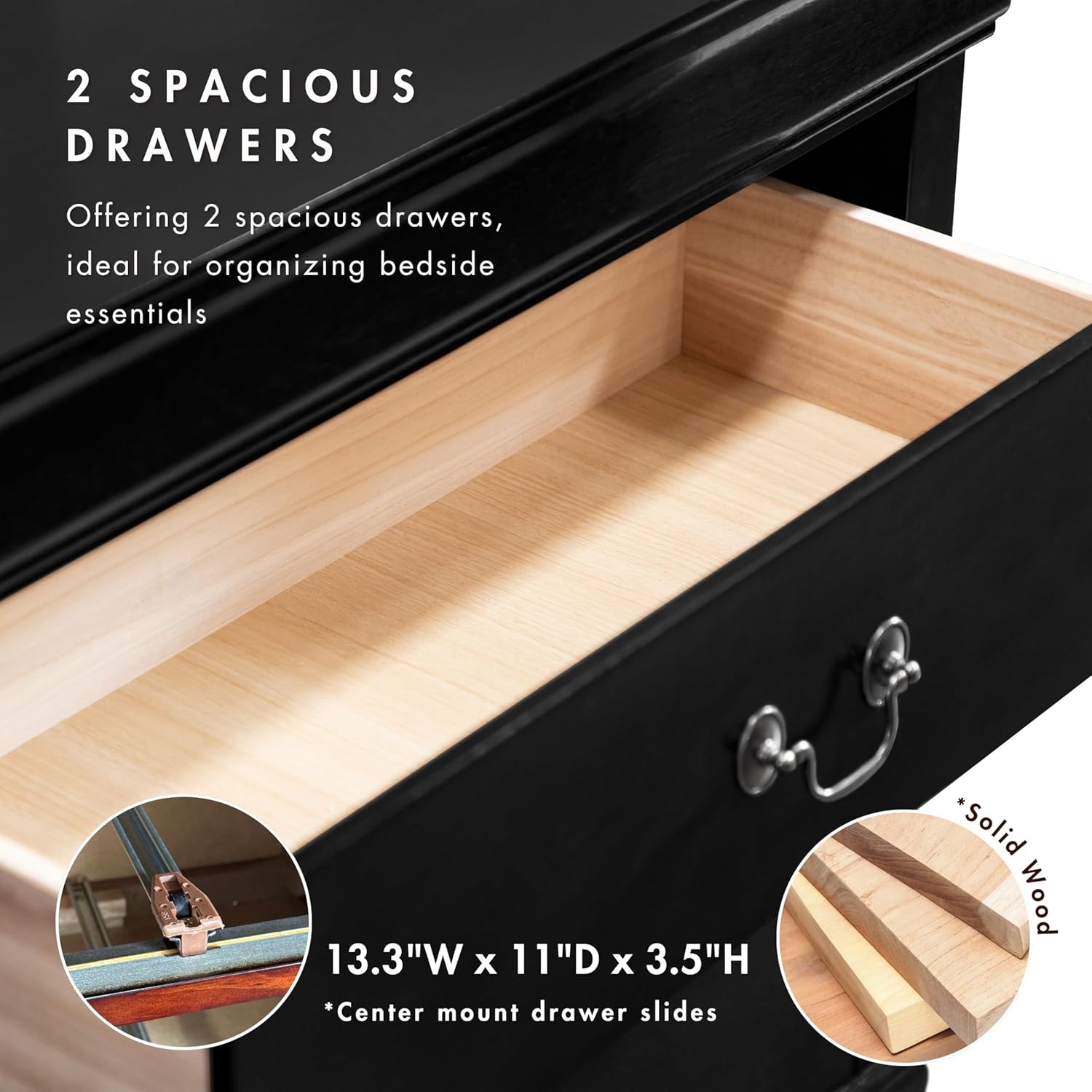 Furniture of America Arabella Traditional Solid Wood Nightstands Set of 2, Bedside Table with Drawers and Antique Nickle Handles, No Assembly Wooden Night Stands for Bedrooms, Guest Room, Dorm, Black