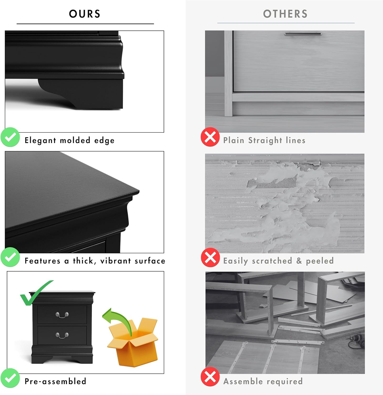 - 🕰️STURDY SOLID WOOD: Black nightstand set of 2 crafted with solid wood legs and framework, offering durability and reliable support. Veneer surface crafted from engineered wood for resistance to cracking.