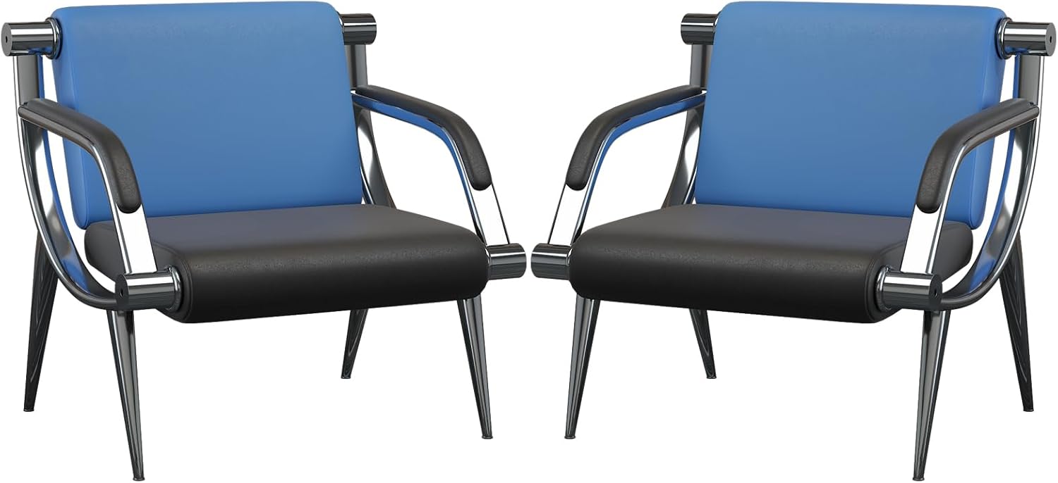 wonline 2Pcs Waiting Room Chair with Armrest PU Leather Office Furniture, Office Guest Seating Lobby Conference Reception Chairs for Airport Clinic Hospital Bank Salon Barber(Blue&Black)