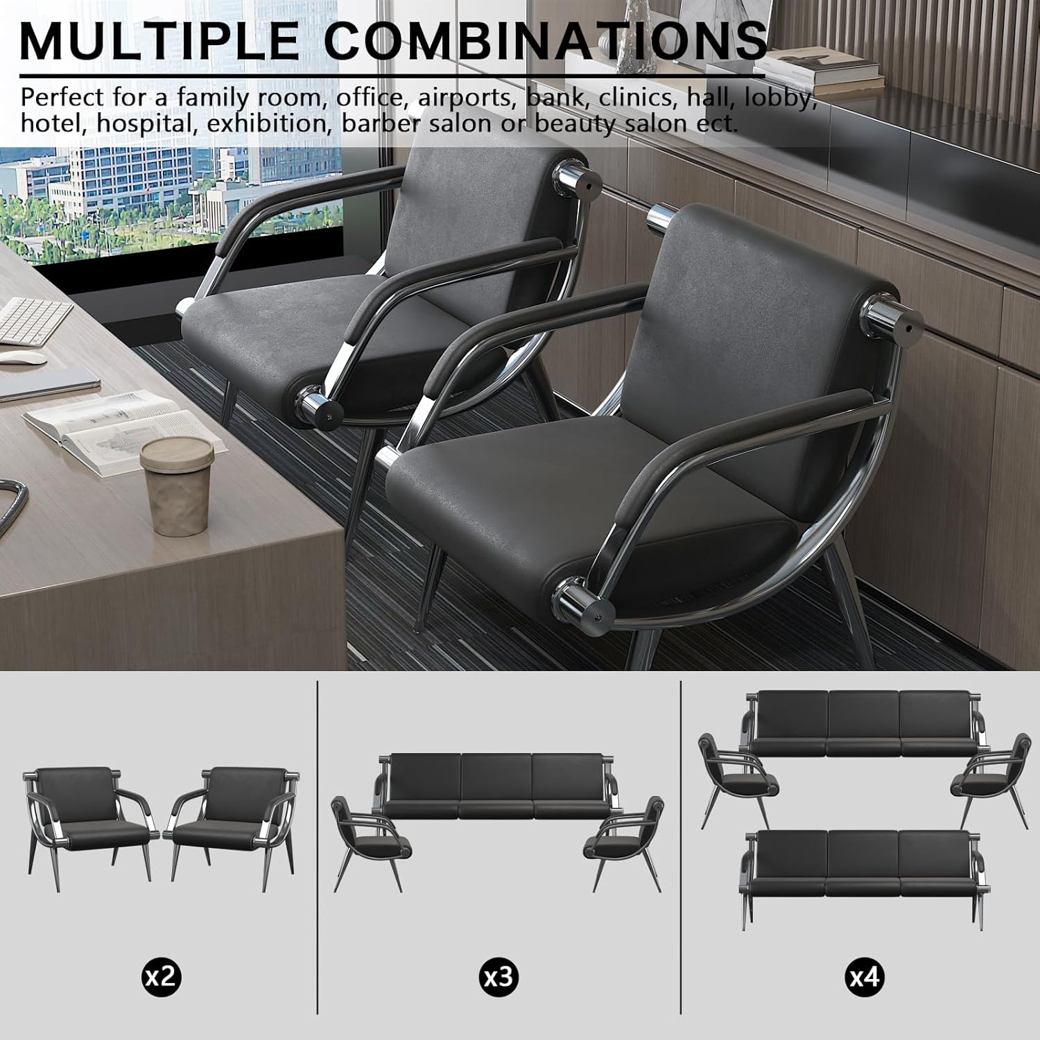 - 【SUITABLE FOR ANY OCCASION】This waiting room bench is available in a variety of colors to match existing furniture, walls, carpet, office space, Whether used as reception chairs, guest seating in waiting rooms, office chairs in meeting rooms or any busy occasion. Perfect for a family room, office, airports, bank, clinics, hall, lobby, hotel, hospital, exhibition, barber salon or beauty salon etc.