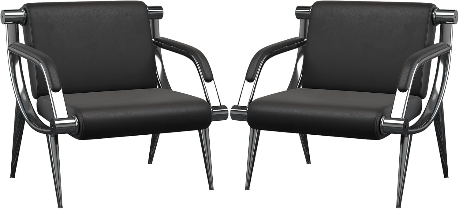 wonline 2Pcs Waiting Room Chair with Armrest Black PU Leather Office Furniture, Office Guest Seating Lobby Conference Reception Chairs for Airport Clinic Hospital Bank Salon Barber(Black)