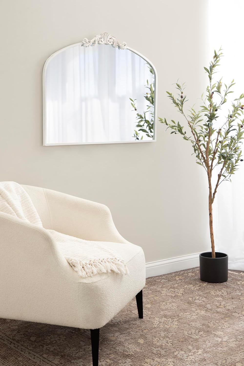 - Timeless Antiqued Finish: This Arendahl arch mirror features a lovely traditional white finish and slight antiquing, which allow the mirror to effortlessly mesh with vintage decor styles