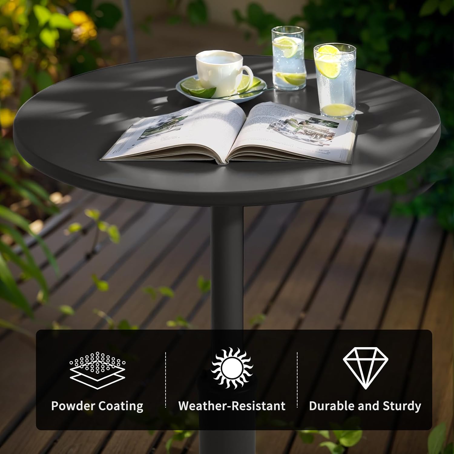 LOKKHAN 37.4" Tall High-top Table-Rustic Industrial Bar Table-23.6" Dia Round Metal Bar Height Standing Pub Table-Dining Room Bistro Table-Cocktail Table (Matte Black)