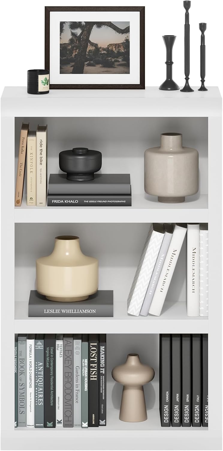 Furinno Rail 3-Tier Open Shelf Bookcase with Classic Style Edges, White