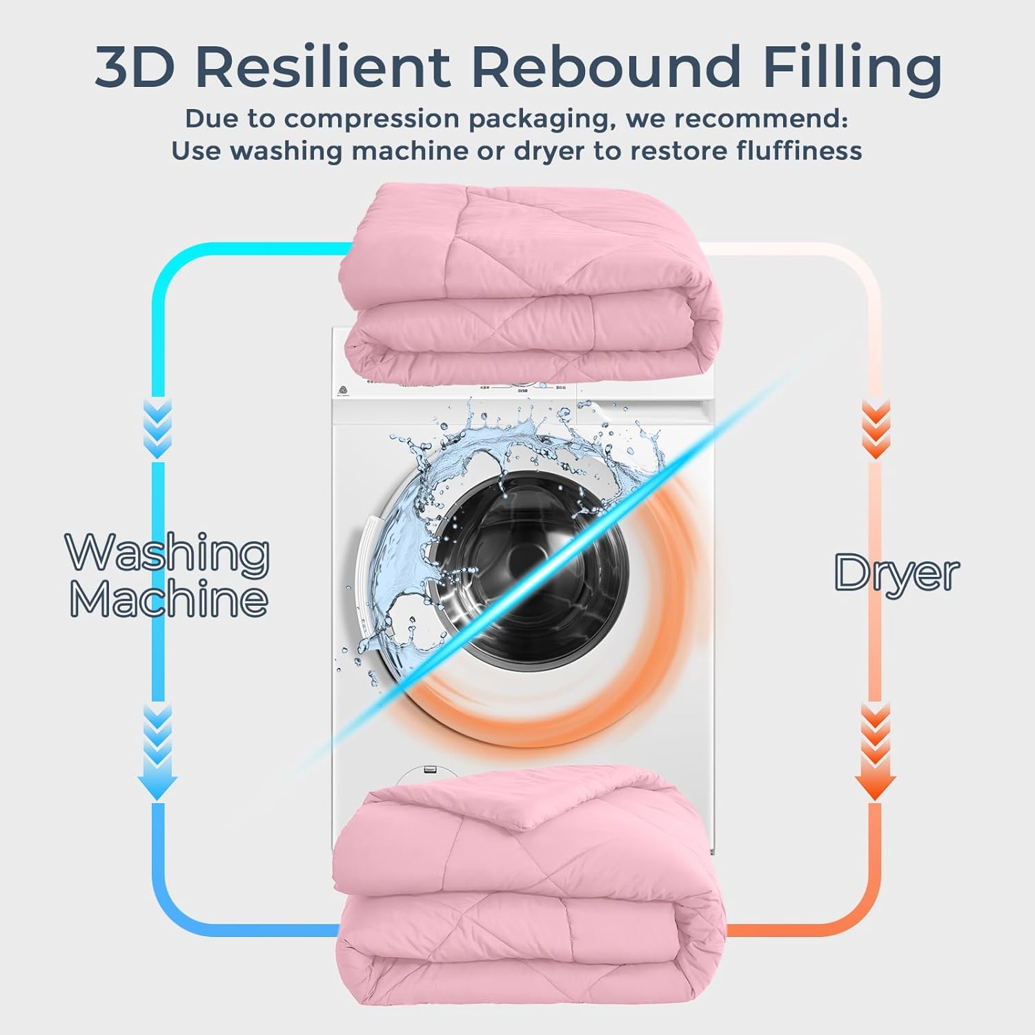 HEVUMYI Pink Queen Comforter Set - 7-Piece All Season Bed in a Bag Queen, Ultra Soft Bedding Set with Comforter, Flat Sheet, Fitted Sheet, Pillowcases, Pillow Shams, Pink