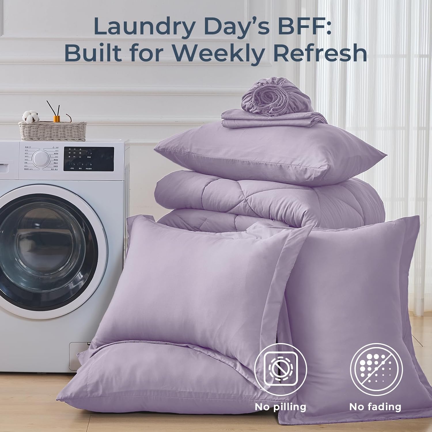 HEVUMYI King Purple Comforter Set - 7-Piece All Season Bed in a Bag King, Ultra Soft Bedding Set with Comforter, Flat Sheet, Fitted Sheet, Pillowcases, Pillow Shams, Lavender Purple