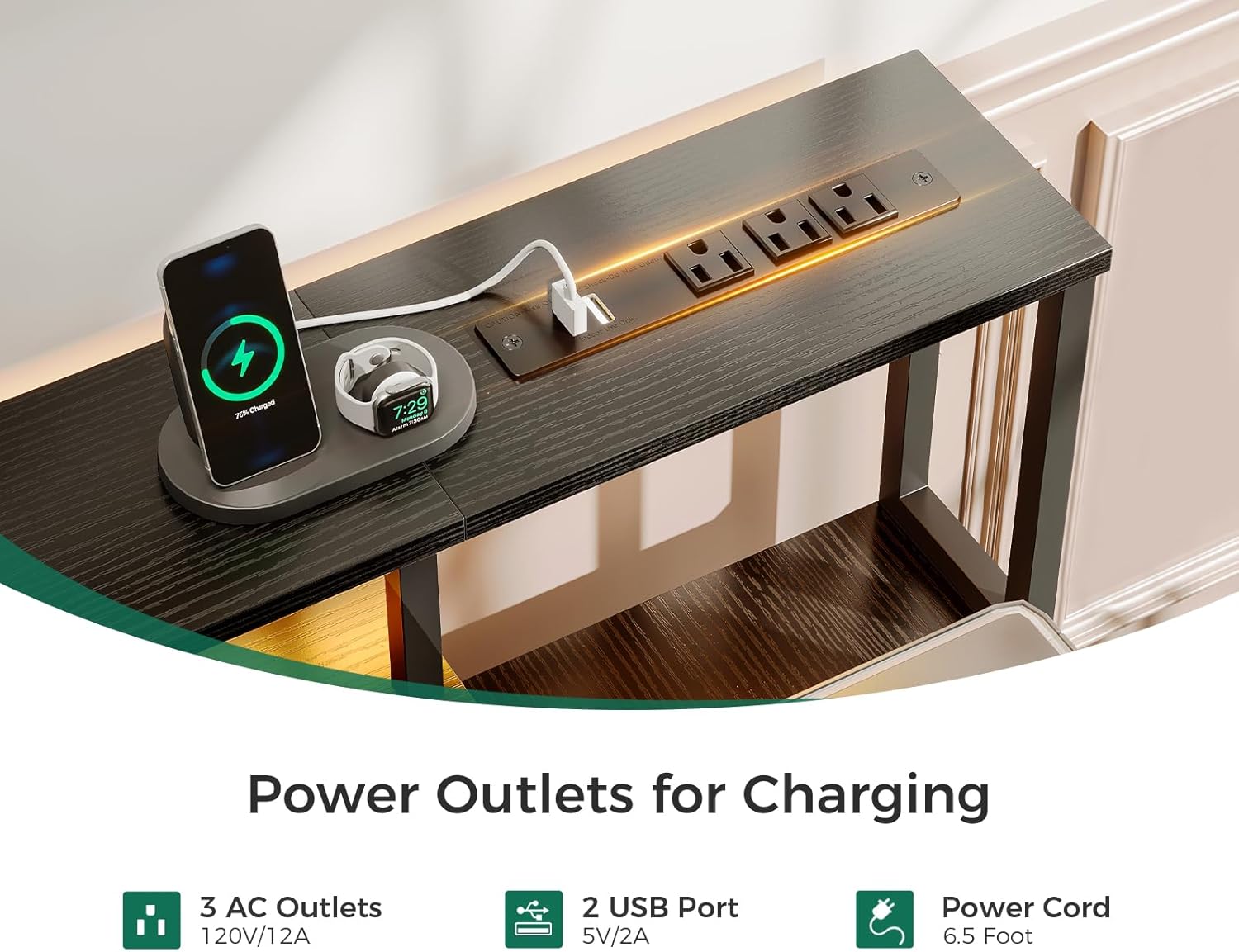 - 【Convenient Charging & Monitor Stand】:The computer desk with power outlet features 3 standard plug outlets and 2 USB ports, providing convenient charging for your laptop, phone and gaming devices. The long monitor stand protects your neck and spine health and also creates extra storage space for your items.