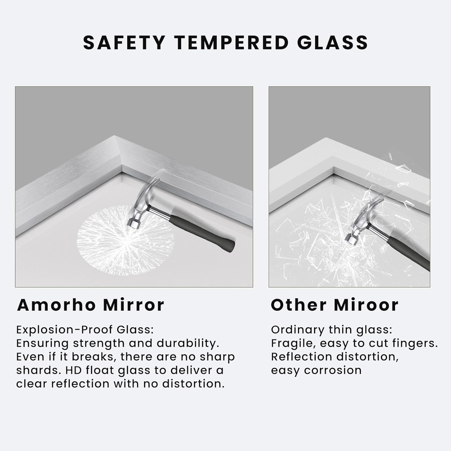 - [High-quality Materials]: Amorho bathroom mirror is made of explosion-proof premium glass, which is safe and durable; High-definition reflective and distortion-resistant