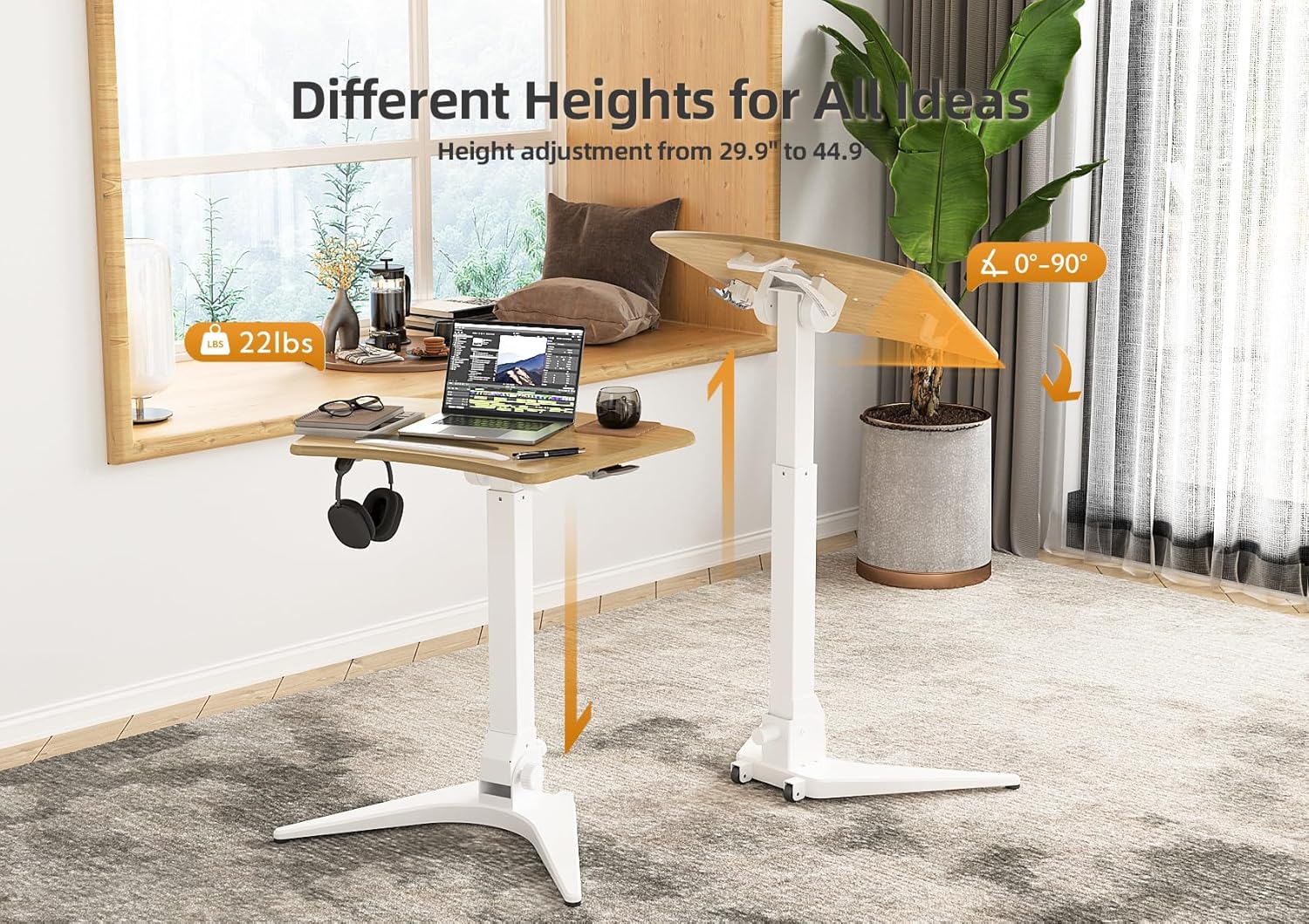 - Pneumatic Height Adjustable: Adjust the height of the mobile standing desk with just one button! Using pneumatic adjustment technology, you can smoothly and quickly switch between sitting and standing positions. The adjustable height range is 29.9" to 44.9"