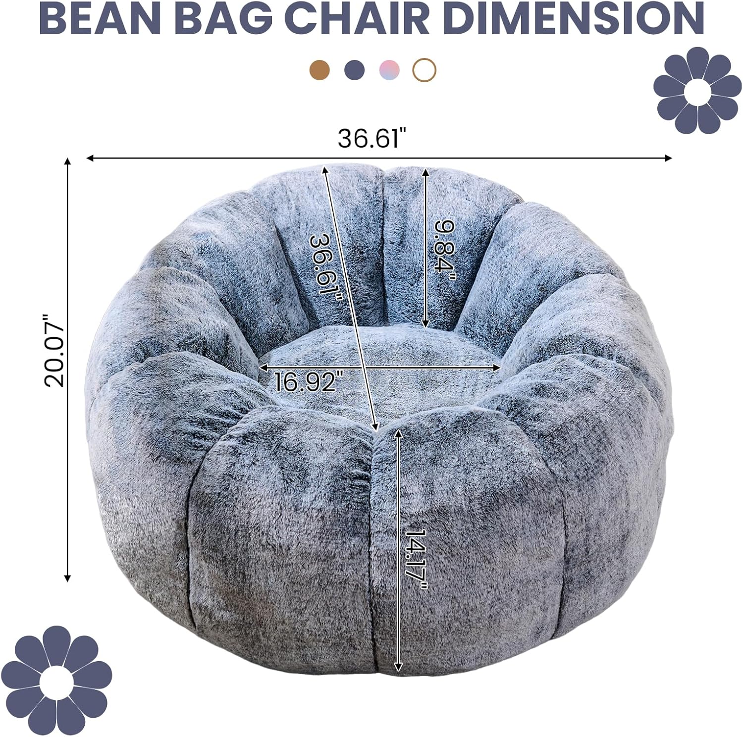 - 【Bean Bag Chair Size】: The size of the comfy chair for bedroom is more suitable for small and medium-sized adults and teenagers, please make sure it is suitable for you. Bean bag chairs size: 36.61"L x 36.61" W x 20.07"H.