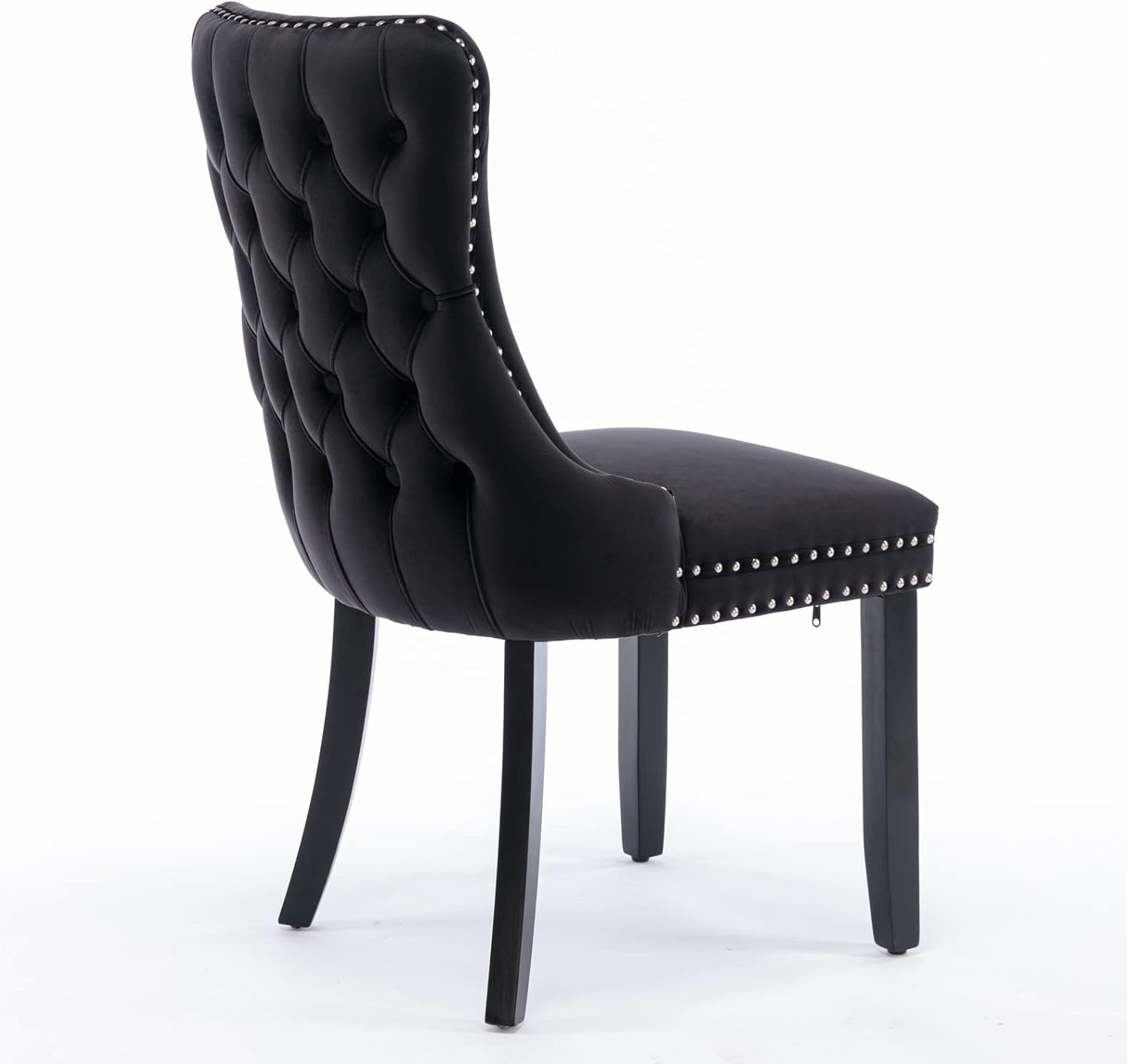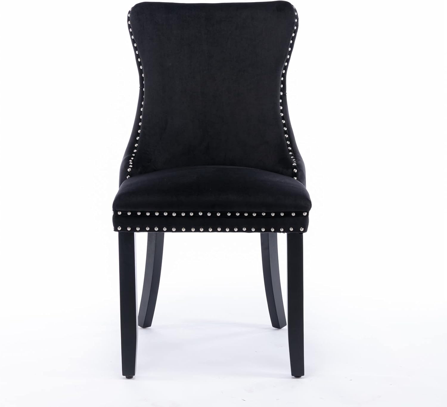 Acosure Set of 2 Velvet Upholstered Wing-Back Dining Chair with Backstitching Nailhead Trim,Exquisite Furniture Stoo W/Wood Legs,for Kitchen,Sitting Room,Black