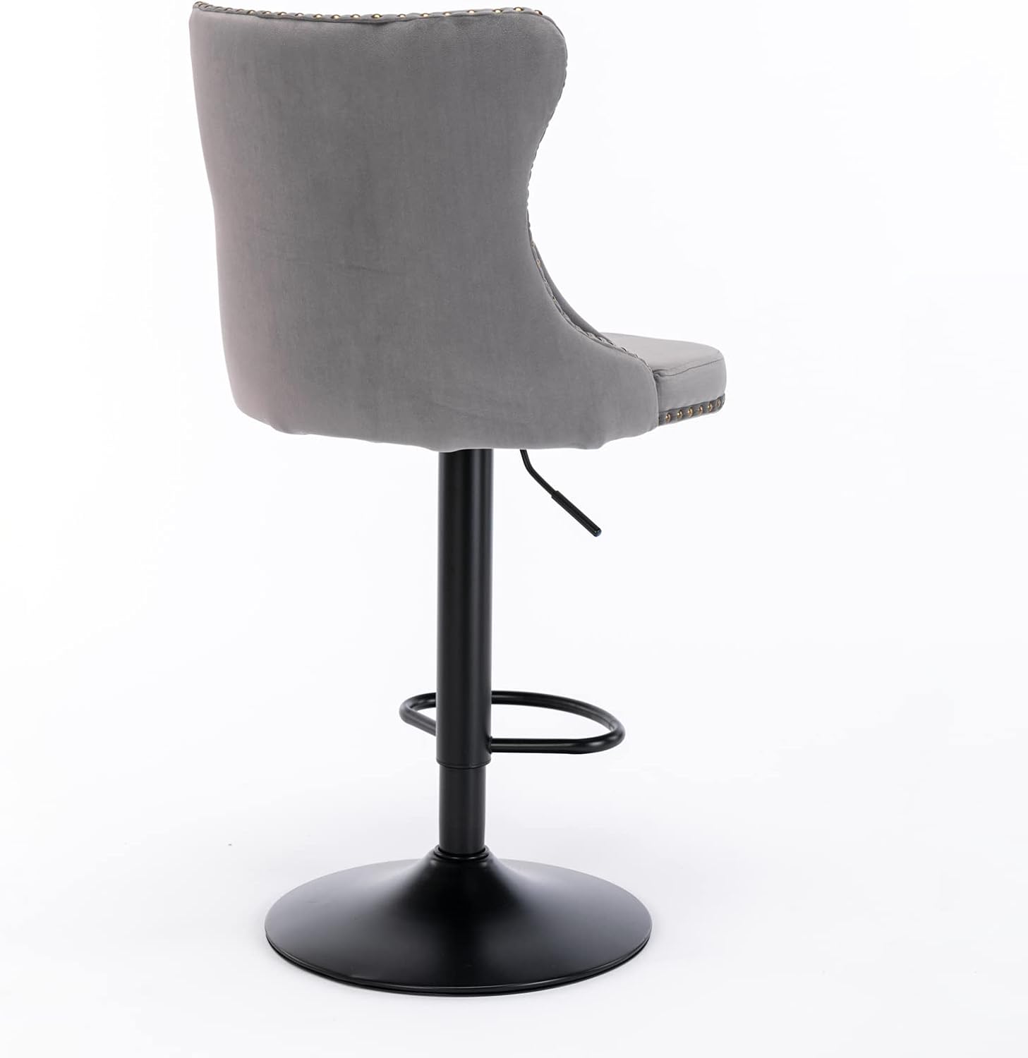 PacknWood Acosure Swivel Velvet Barstools Adjusatble Seat Height from 25-33" with 17.7" Base and Backs Comfortable Tufted,Modern Upholstered Bar Chairs for Home Pub Kitchen,Gray,Set of 2