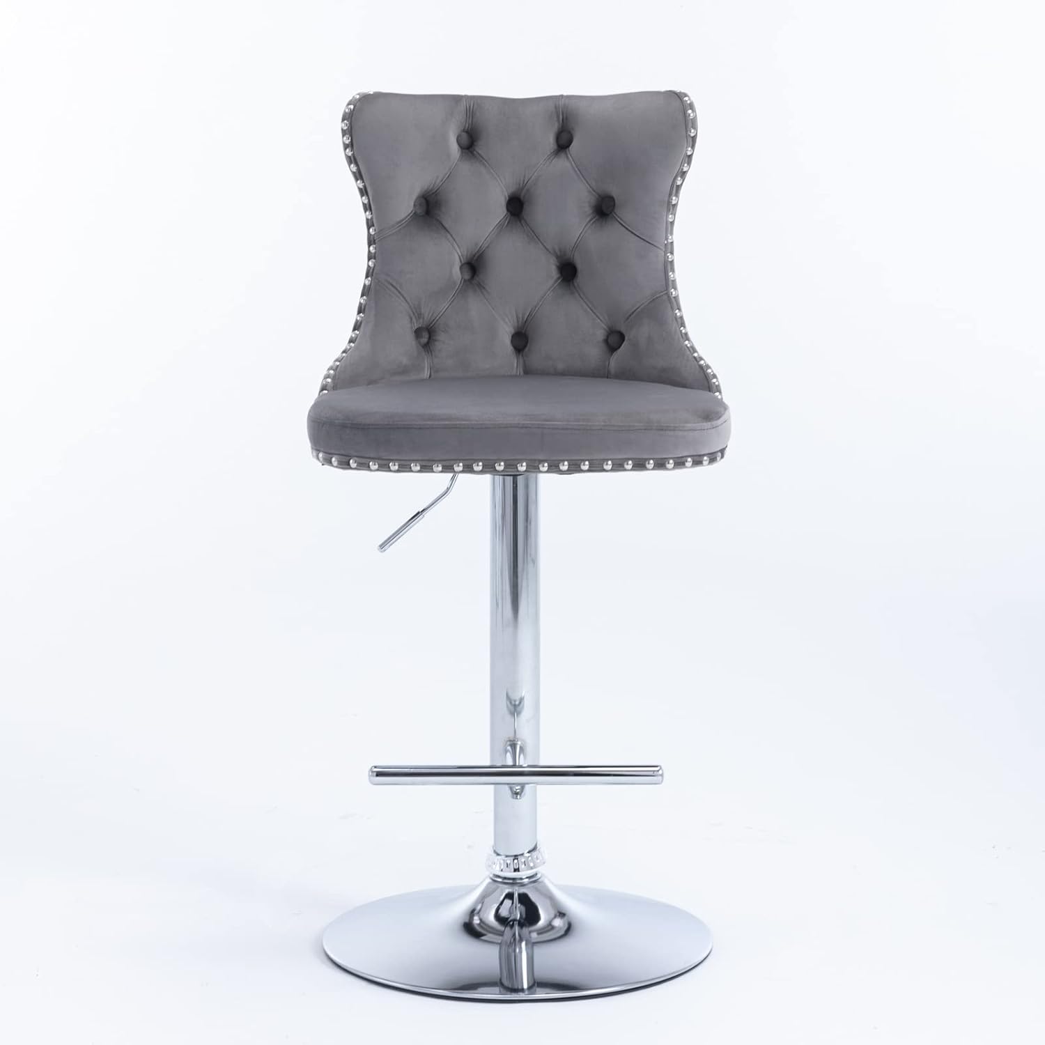 PacknWood Acosure Swivel Velvet Barstools Adjusatble Seat Height from 25-33" with Comfortable Tufted,Modern Upholstered Chrome Base Bar Chairs,for Home Pub Kitchen,Gray,Set of 2