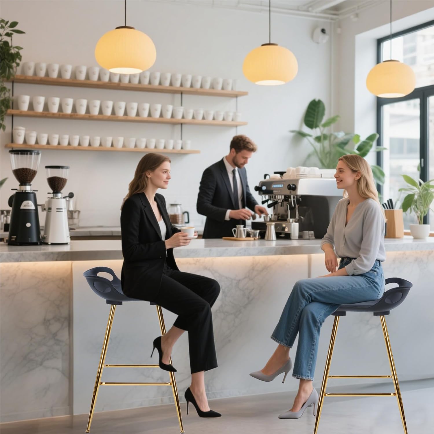 - Versatile Use, these black bar stools are ideal for small spaces, doubling as black and gold bar stools for your kitchen counter or bar stools for kitchen island. Their compact, kitchen bar stools design and 26 inch bar stools height make them versatile for any setting, from casual breakfast nooks to elegant home bars
