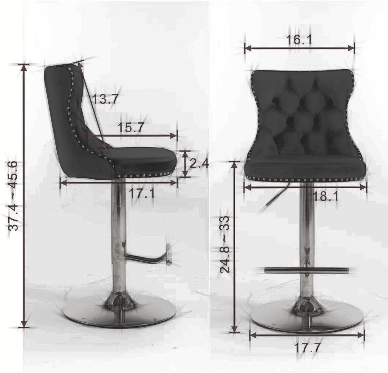 - Material:The chairs are made of high-quality velvet fabric that is thick and luxurious.The fabric provides a delicate touch, enhancing the overall comfort and feel.