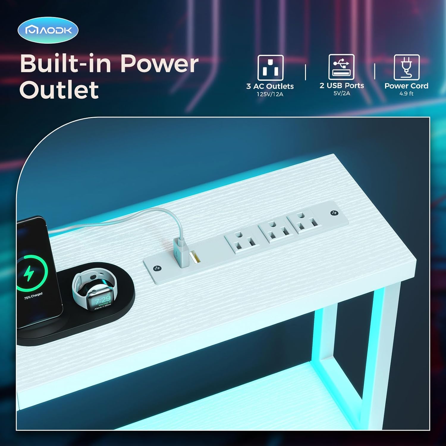 - ✔Built-in Power Outlet: The work desk is equipped with a power strip owning 3 AC outlets & 2 USB ports. You can easily and conveniently charge your smartphone, gaming gear or Bluetooth devices when playing games or working at home