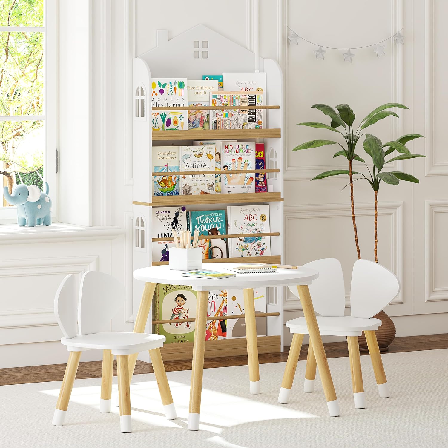 UTEX Kids Table and Chair Set, Toddler Table with Elephant Ear Chairs, 3 Pieces Kids Round Table for Toddlers, Girls, Boys,White