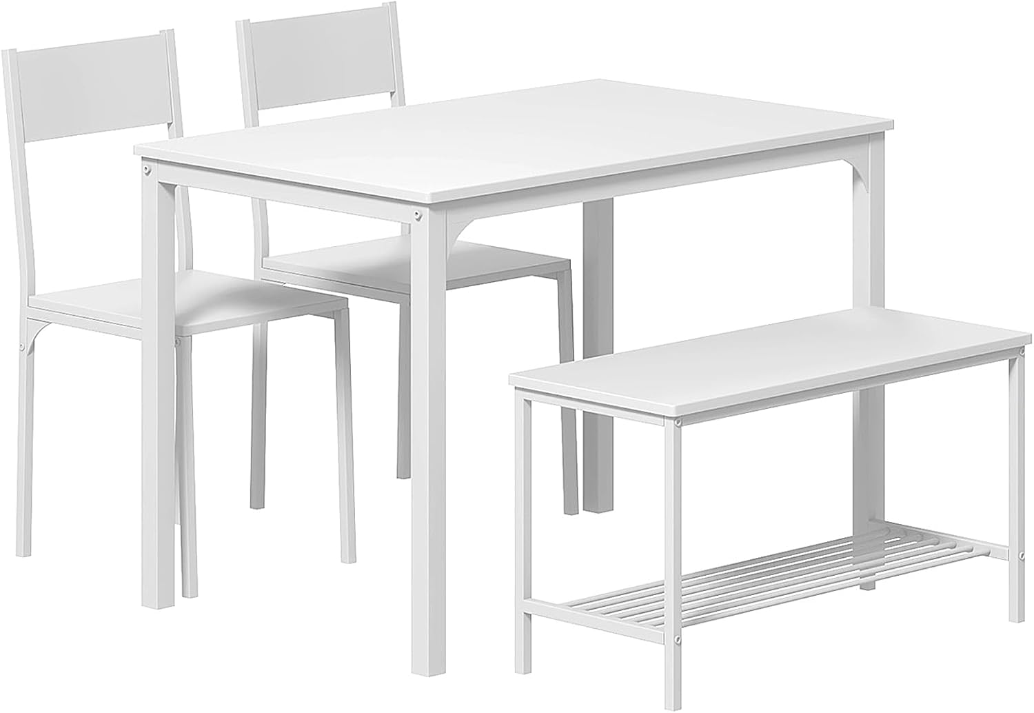 - A Complete Dining Solution with Storage -- This one-in-all dining table set features 1*dining table, 2* chairs, and 1* bench, providing everything you need for memorable meals. Chairs boast ergonomic contours for comfort, while the bench with storage shelf keeps your dining area organized and clutter-free.