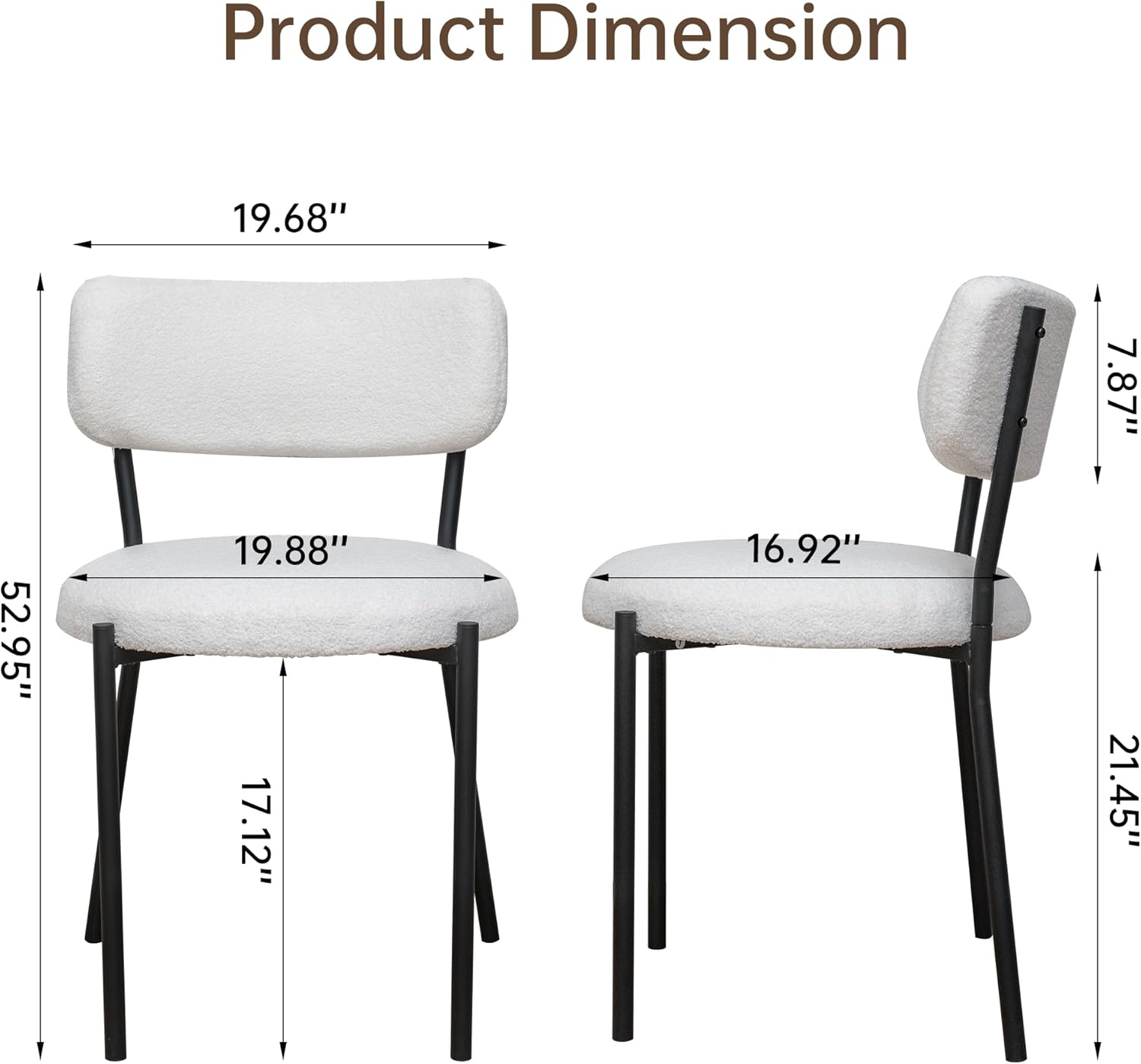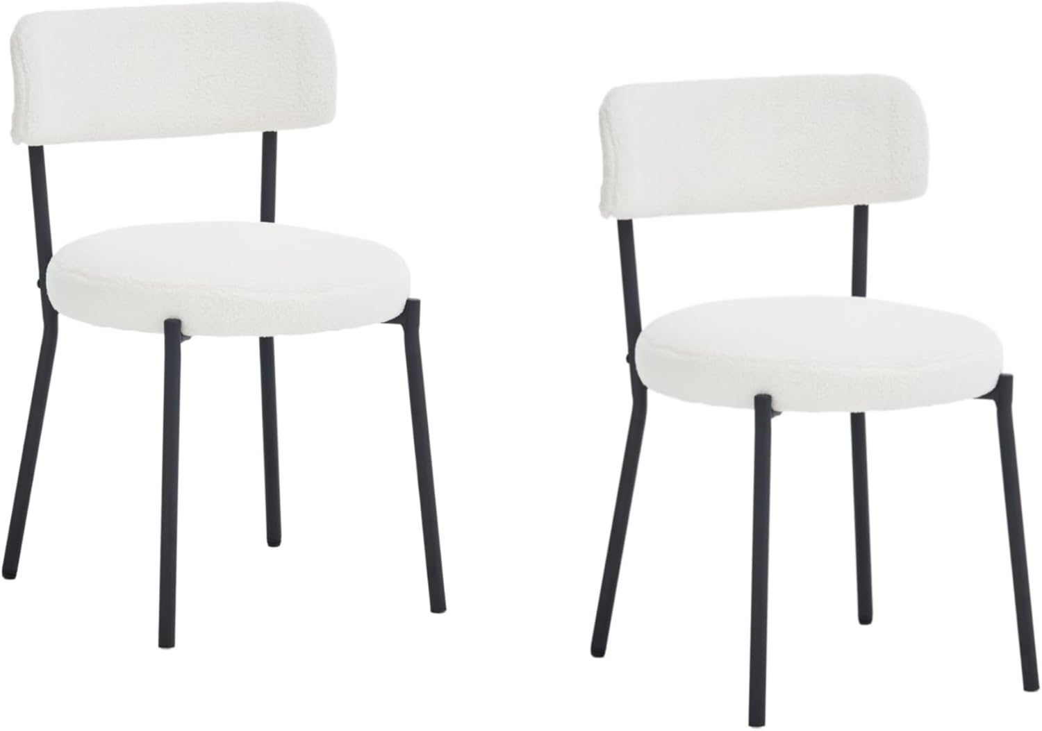 - 【Upholstered Dining Chair】Our dining chairs set is made of boucle fabric which is fluffy, warm, comfortable, high elasticity and not easy to shed. The dining chair combination with white seat cushion and black metal frame design is very perfect for your kitchen, dining room, living room, meeting room and bedroom.