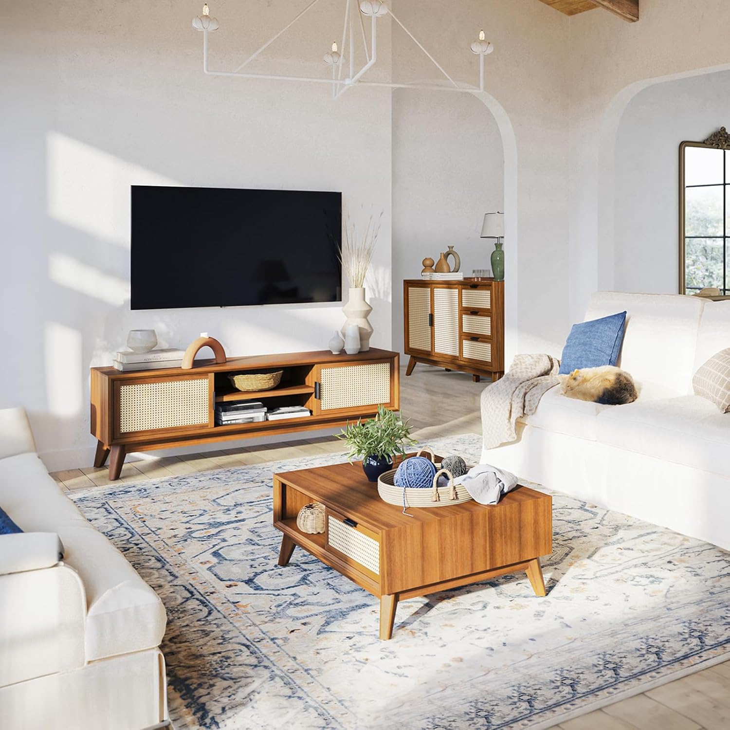 - A STUNNING COMBINATION: This Living Room Table Combines the Rich, Warm Beauty of Acacia Wood With the Intricate, Woven Texture of Synthetic Rattan, Adding a Touch of Elegance to Any Living Space