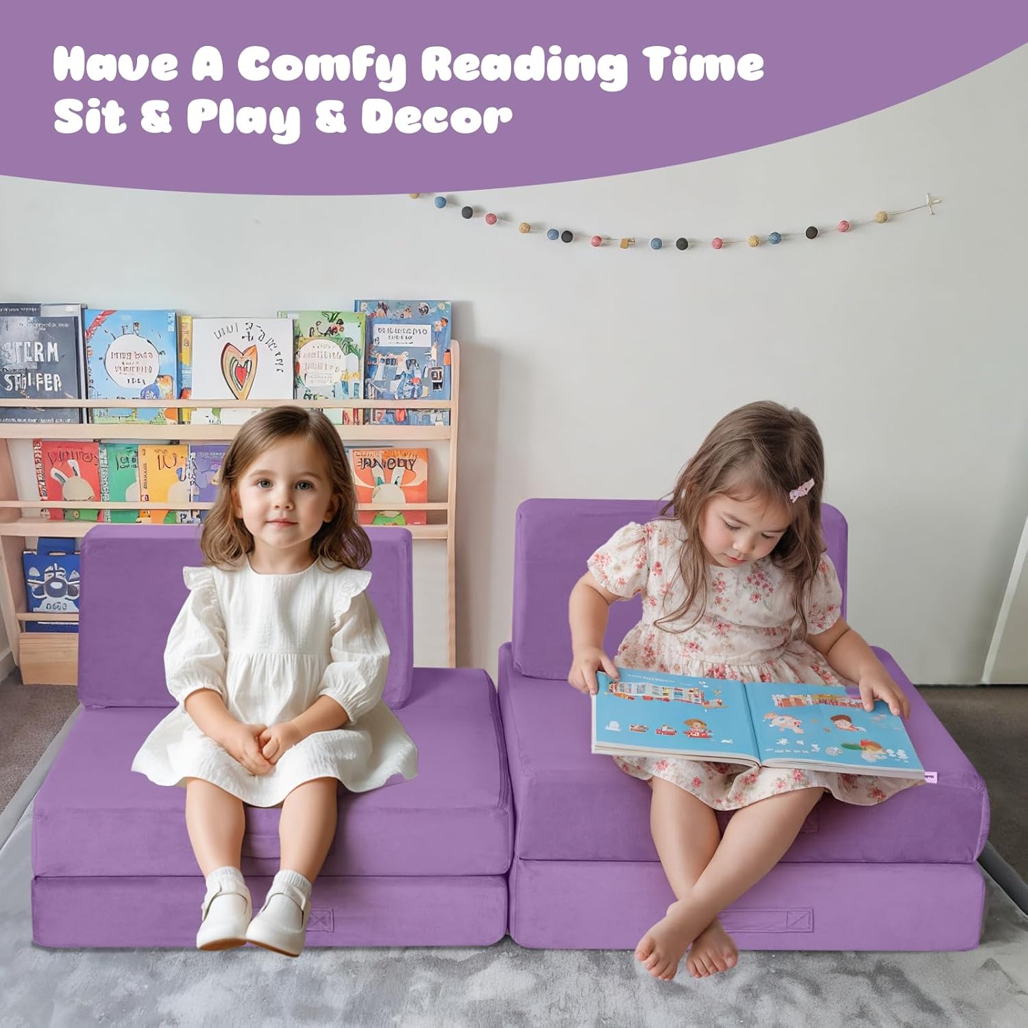 - [8-Piece Modular Kids Sofa] The MeMoreCool kids sofa includes 8 pieces: four foldable seats, two back cushions, and two round cushions. This versatile sofa encourages imagination, transforming into a playhouse, rocket ship, fort, tunnel, bed, or two chairs for playing, climbing, or relaxing. Arrives fully assembled.