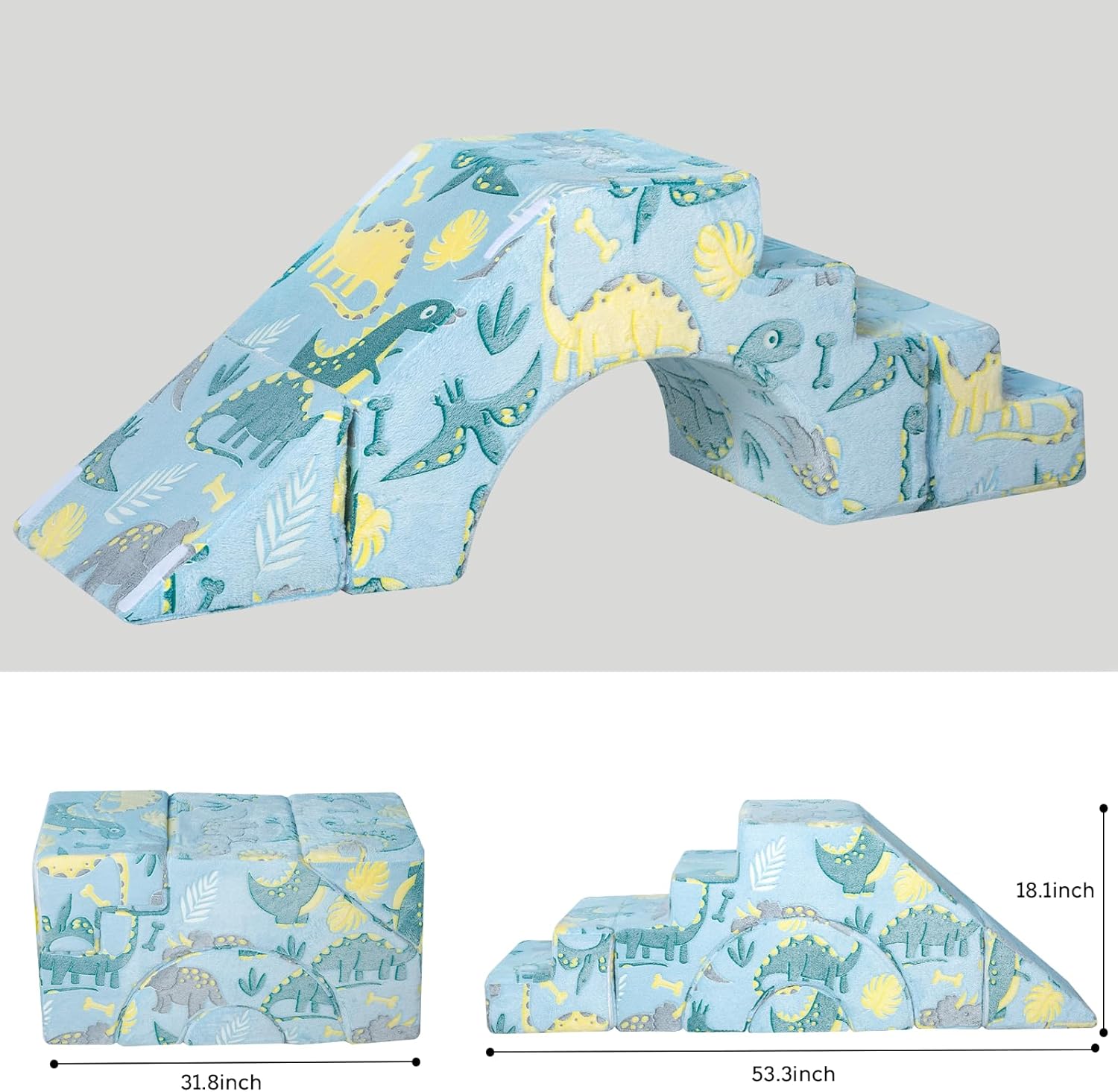 MeMoreCool Foam Climbing Toddler Couch, Modular Kids Sofa with Slide & Stair, Convertible Baby Couch for Playroom, Sectional Furniture for Crawling, Climbing, and Kids’ Play