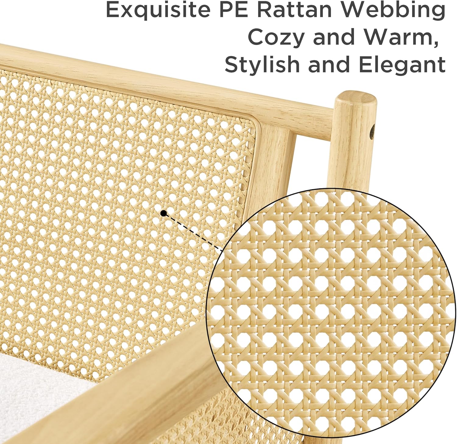 Yaheetech Accent Chair, Boucle Vanity Chair with Rattan Back Arms, Mid Century Chair Upholstered Living Room Chair Lounge Chair Bedroom Balcony White