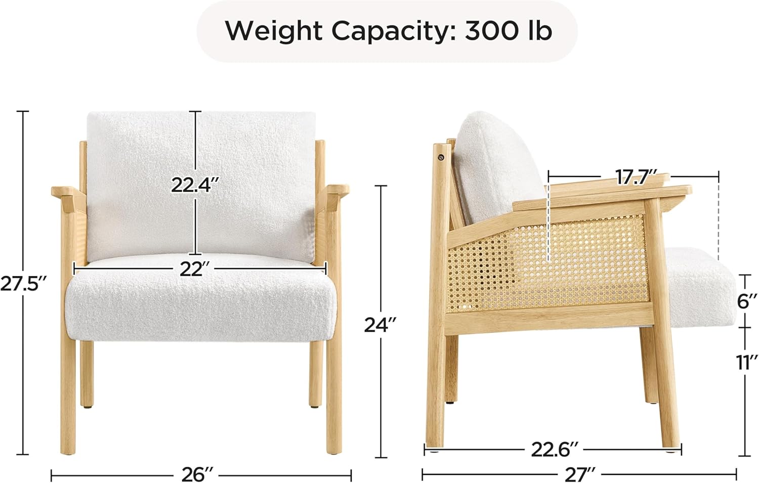 - Frame Material Rubberwood : Seat Material Type Boucle Fabric