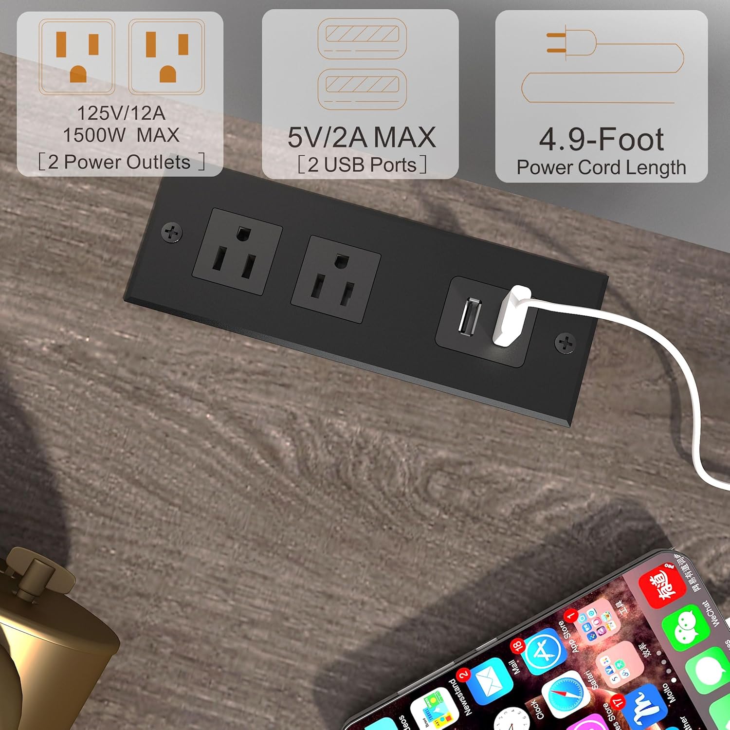 - Side Table with Outlets and USB Ports: The charging station includes 2 3-prong AC outlets and 2 USB ports, meeting your needs to charge your phone, desk lamp and laptop freely. 4.9 feet power cord helps you move the tea table easily