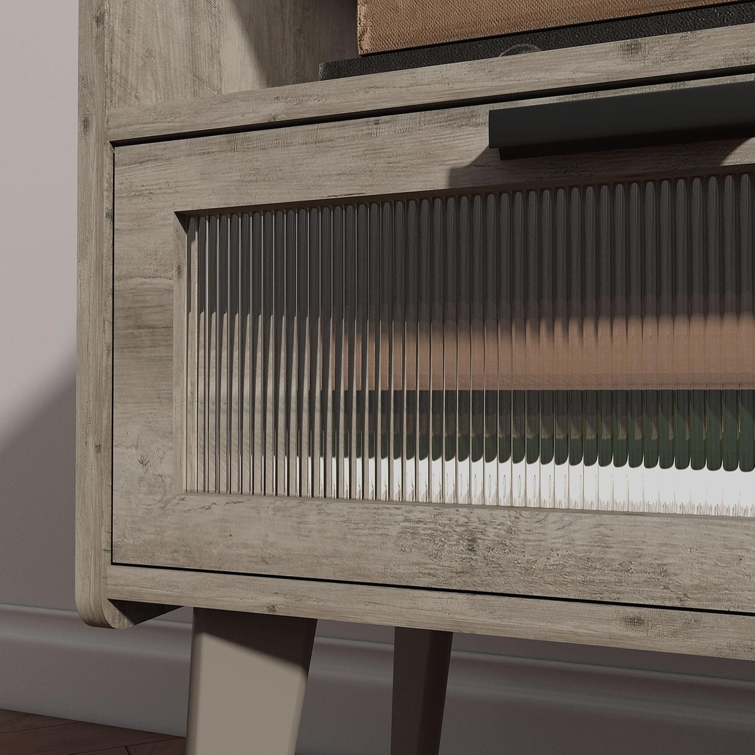 - Nightstand with MORU Glass Door : MORU Glass is a patterned glass with uneven vertical lines, which transmits light but does not see through. It protects your privacy, brings a hazy beauty. It combines modern and mid century element makes the room look more stylish