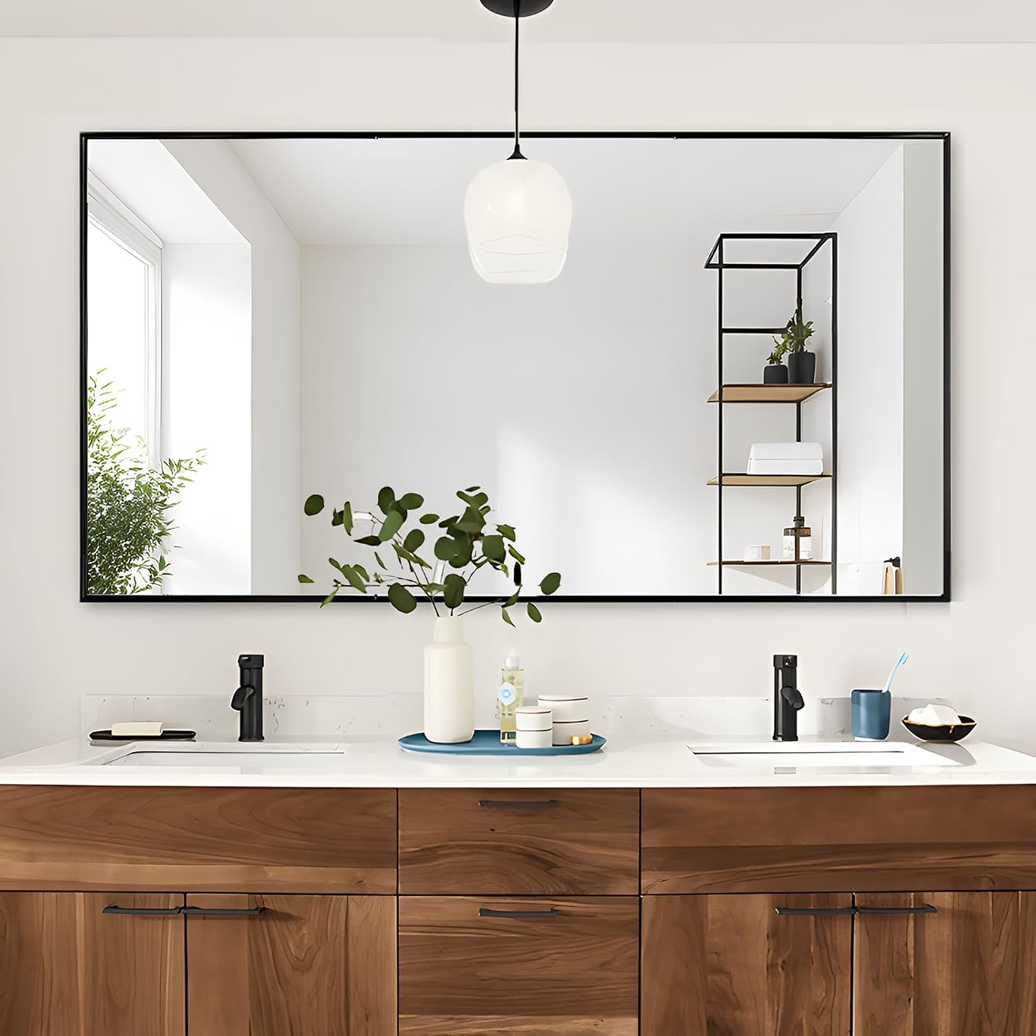 - 【Premium Material】The retangle wall mirror 30x48 is made of HD floating silver glass and 7mm MDF backboard, The the mirror for over sink can reflect real image without any distortion, And the thickened metal frame can provide complete protection for the miorror, ensure the safety of usage.
