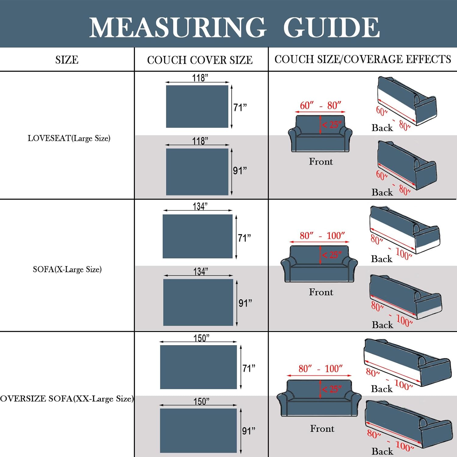 - HOW TO CHOOSE: Please measure your furniture before you buy. We recommend Large Size 71"x 118 " / 91"x 118 "for loveseat; X-Large Size 71" x 134" / 91"x 134"for sofas; XX-Large Size 71" x 150" / 91"x 150"for oversize sofas; Our sofa slipcover are suitable for most furniture, provide perfect coverage for the sofa (including armrests).