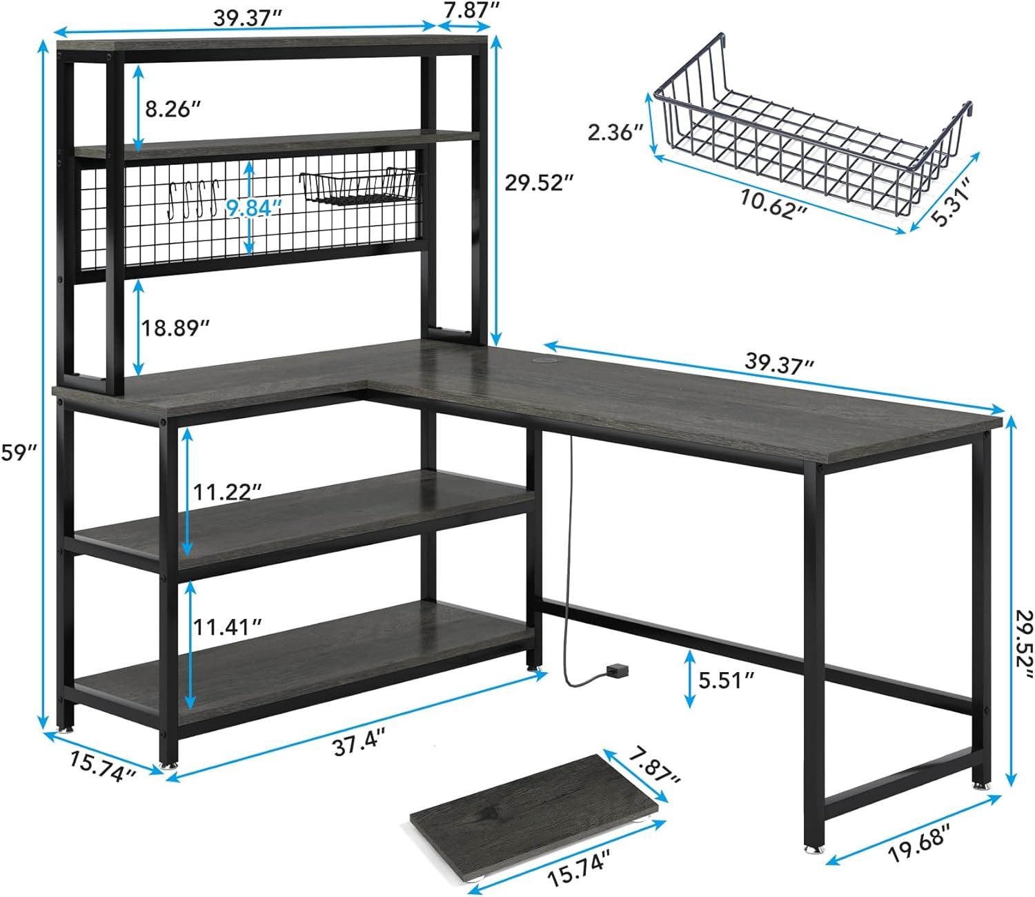 - 【MODERN L-SHAPED DESK with Shelf 】: Showcases an L-shaped silhouette, perfect for tucking into a corner or making a statement in your working space. Desk with hutch features 5 open shelves that are perfect to keep everything supplies easily corralled.