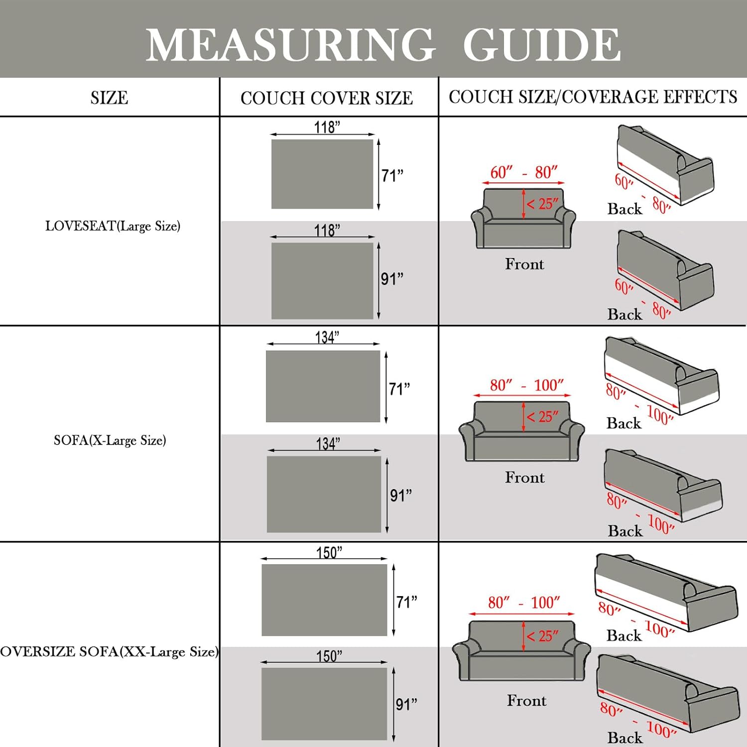 - HOW TO CHOOSE: Please measure your furniture before you buy. We recommend Large Size 71"x 118 " / 91"x 118 "for loveseat; X-Large Size 71" x 134" / 91"x 134"for sofas; XX-Large Size 71" x 150" / 91"x 150"for oversize sofas; Our sofa slipcover are suitable for most furniture, provide perfect coverage for the sofa (including armrests).