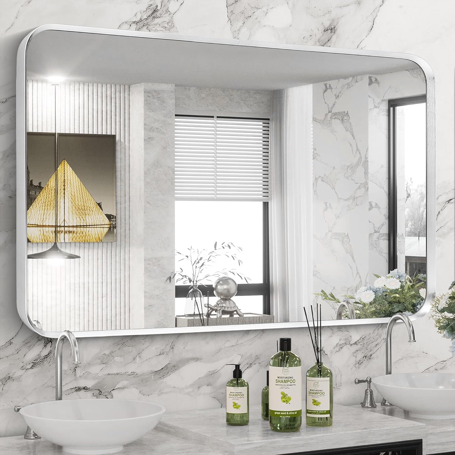 - Exceptional Quality: Our Silver bathroom vanity mirror is made of 4MM tempered glass, more shatterproof and explosion-proof than ordinary mirrors, making it safer to use. The frame is made of advanced aluminum alloy frame, which is waterproof and rust proof, sturdy