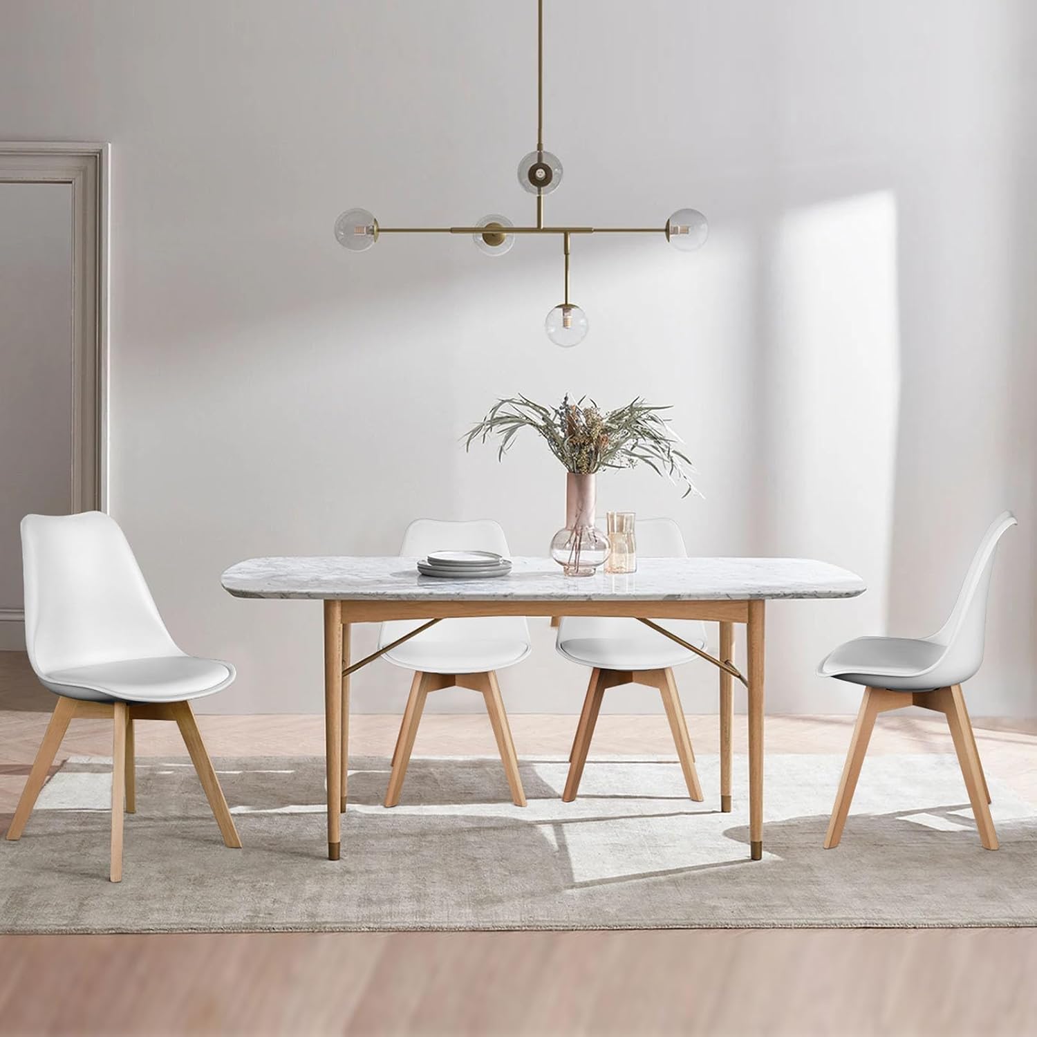 - Ergonomic comfort: Kitchen chairs with a new generation of thickened high-density sponge cushions. The backrest wraps the entire back, with high elasticity, and tilts back 10 degrees. The chairs are comfortable to sit on, can support the back and hips