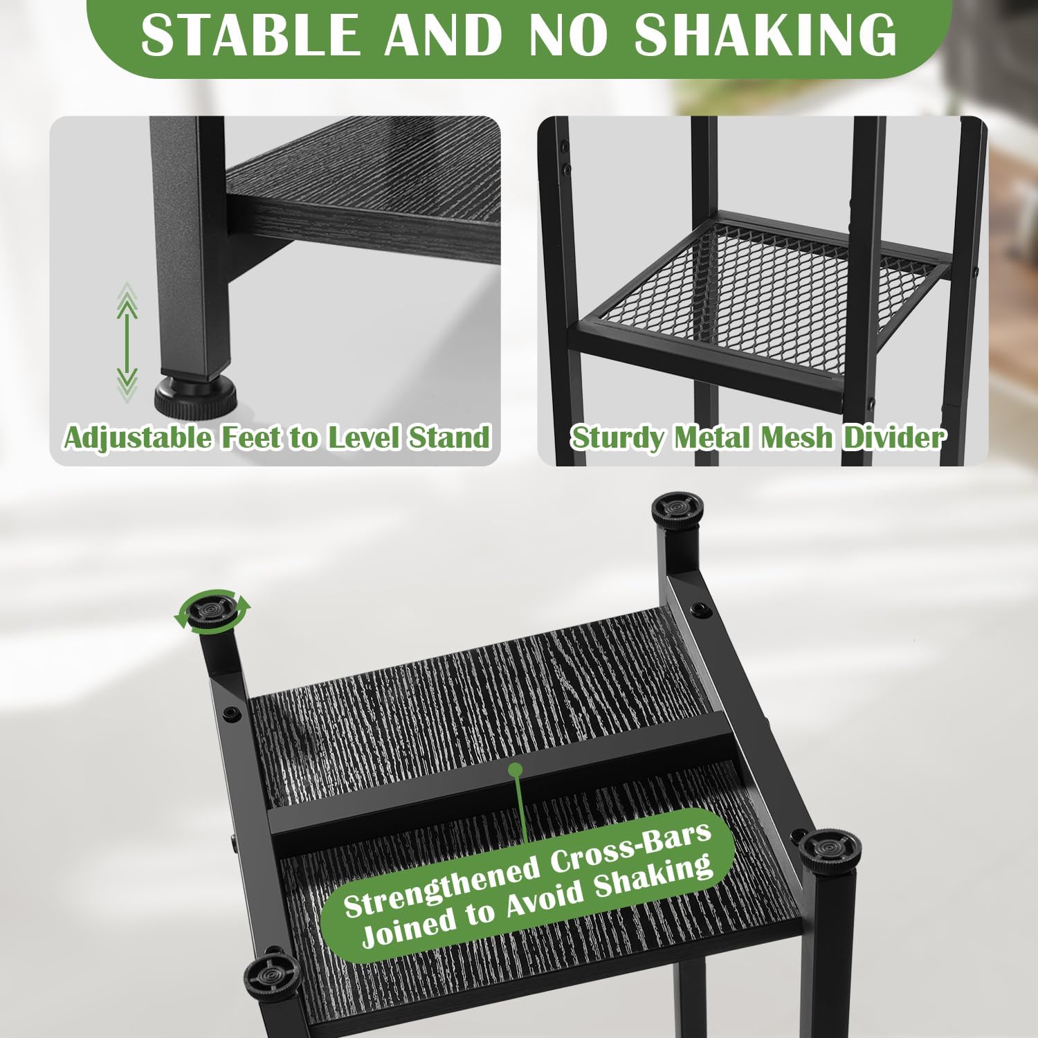 - Stable and No Shaking:The sturdy metal frame and unique strengthened cross-bars joined make the indoor plant stand more stable,feet are adjustable to level metal plant stand,not tip over easily.