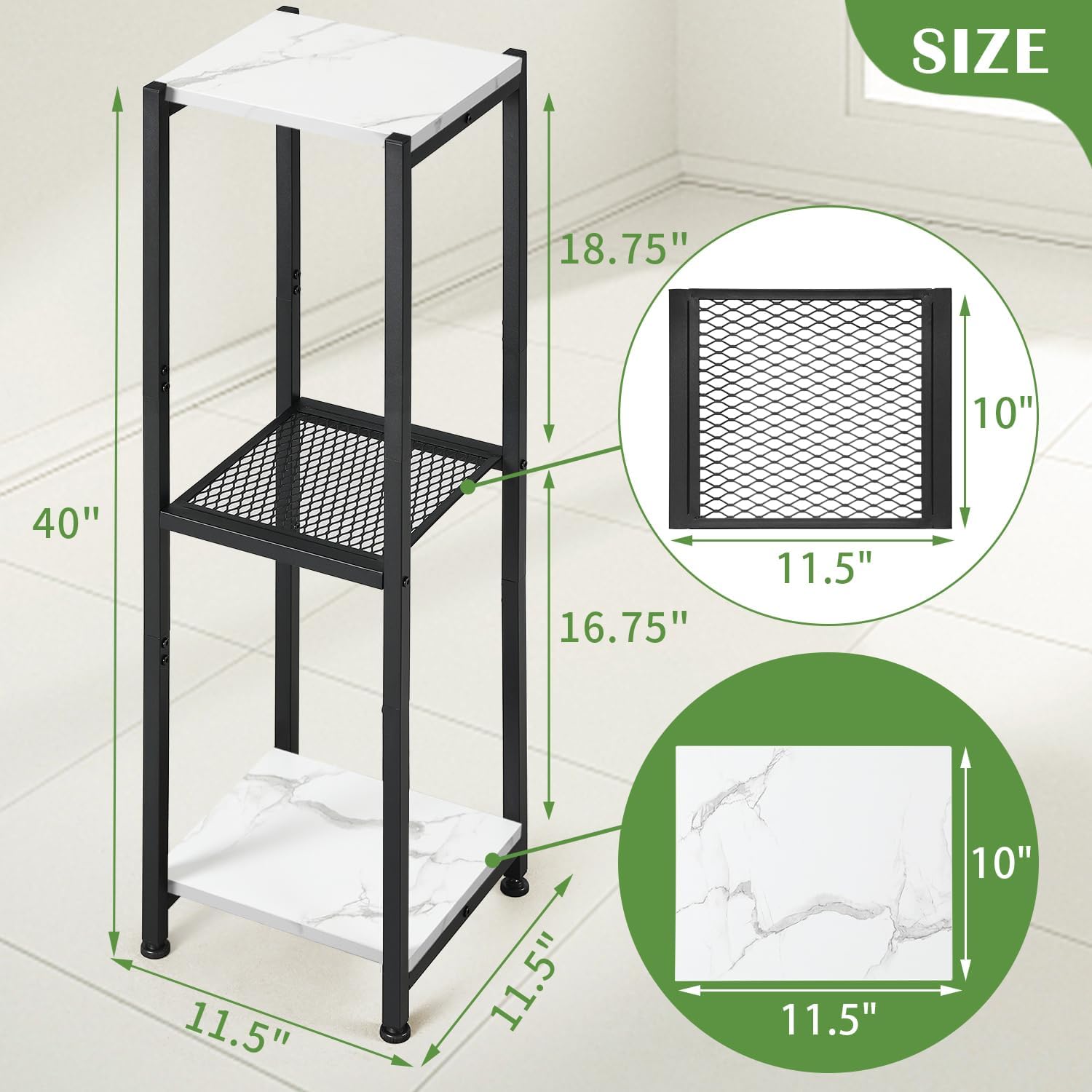 Extra Tall Plant Stand Indoor,40 Inch Plant Stands,3 Tier Metal Plant Stand with Heavy Duty Wood and Metal Mesh Shelf,Marble White and Black