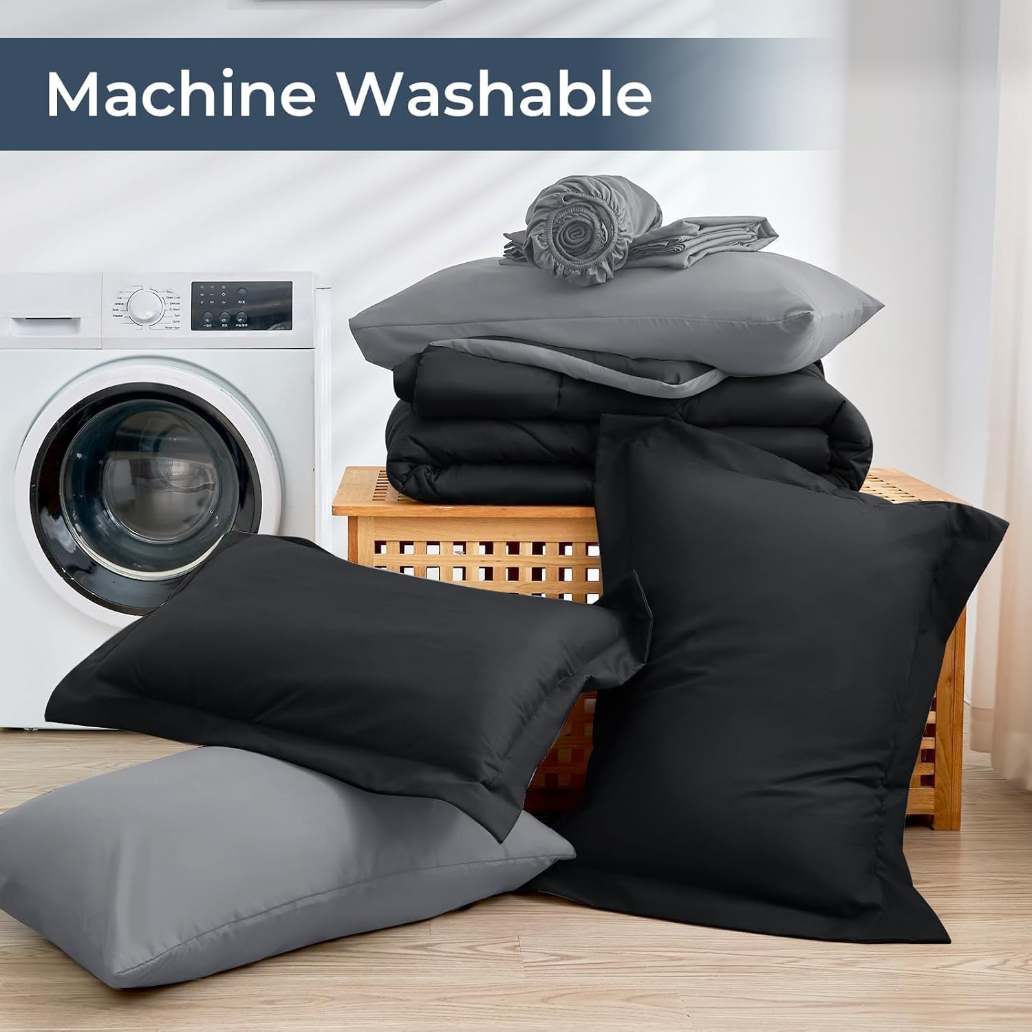 HEVUMYI Full Comforter Set - 7-Piece All Season Bed in a Bag Full, Ultra Soft Bedding Set with Comforter, Flat Sheet, Fitted Sheet, Pillowcases, Pillow Shams, Black & Light Grey