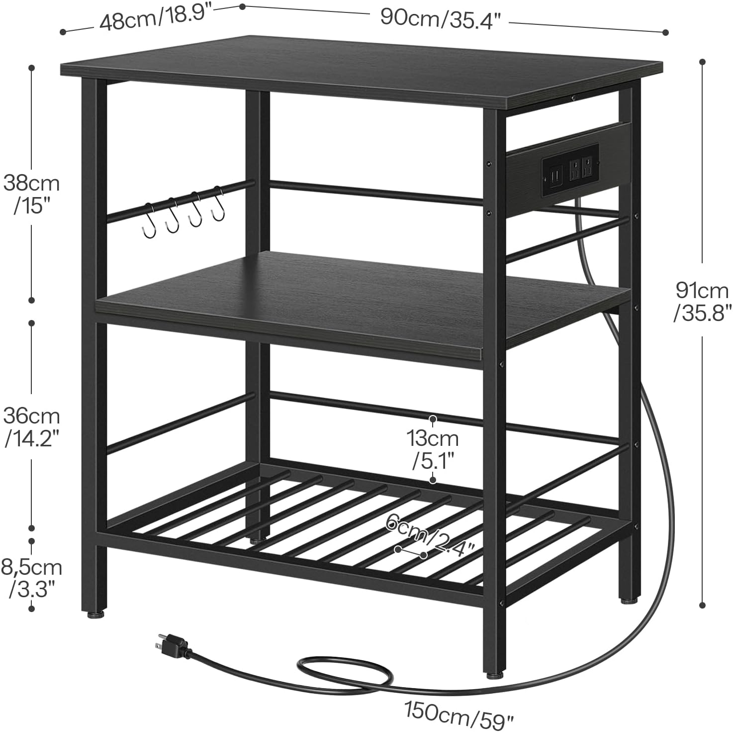 HOOBRO Kitchen Island with Storage, Kitchen Island Table with Power Outlet, 35.4" L 3 Tier Coffee Station and Microwave Stand, for Home, Kitchen and Dining Room, Black BB021ZD01