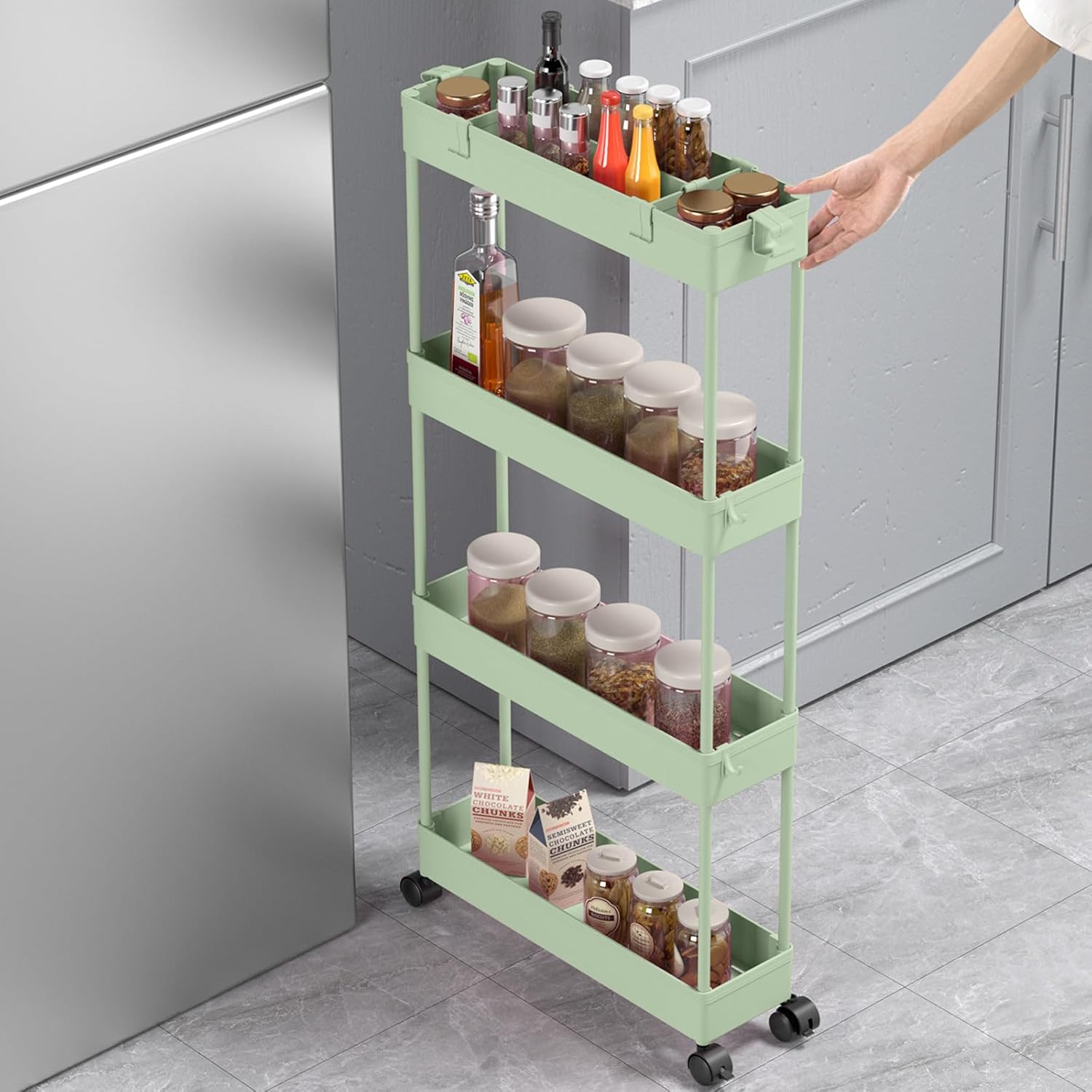 SPACELEAD Slim Storage Cart 4 Tier,Bathroom Organizer Rolling Utility,Mobile Shelving Unit Slide Out for Office, Kitchen, Laundry Room & Narrow Places,Green