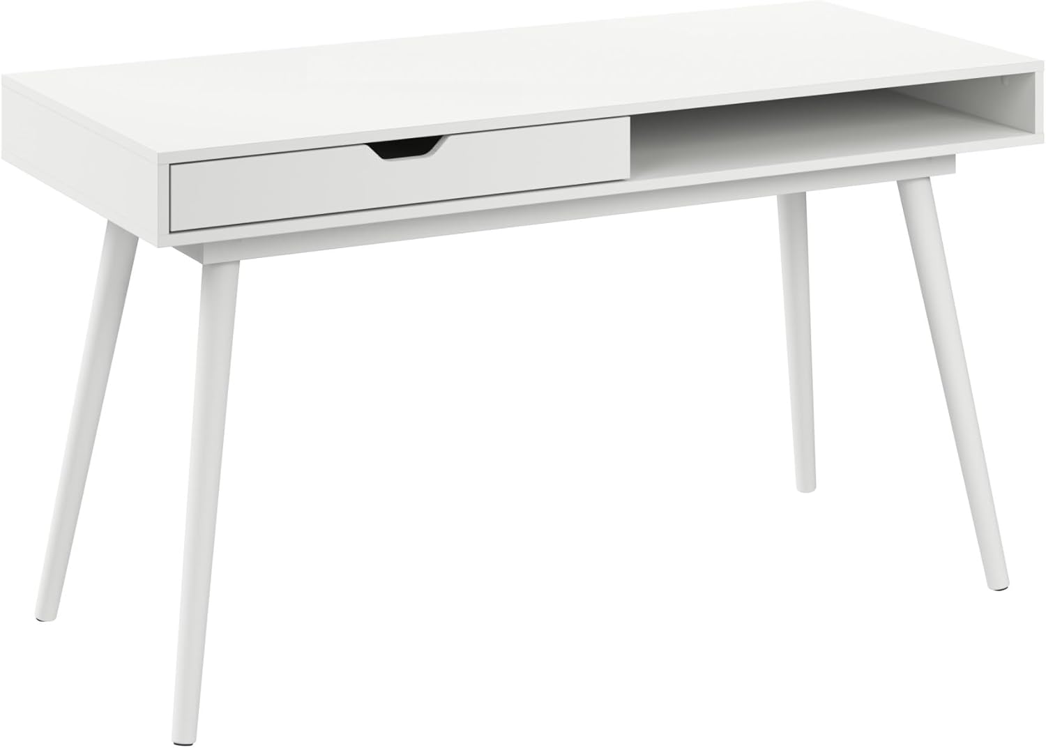 Bush Furniture Nora 54W Writing Desk in Pure White | Computer Table for Home Office Workspace or Entryway