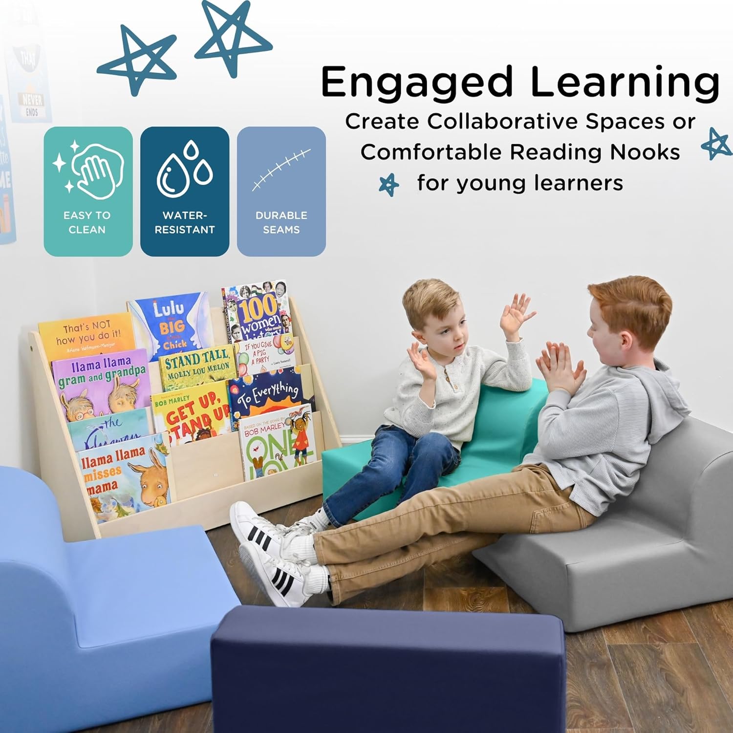 - SPACIOUS SEATS: The generous dimensions of each lounger ensure that every child has ample space to relax and delve into stories with utmost comfort.