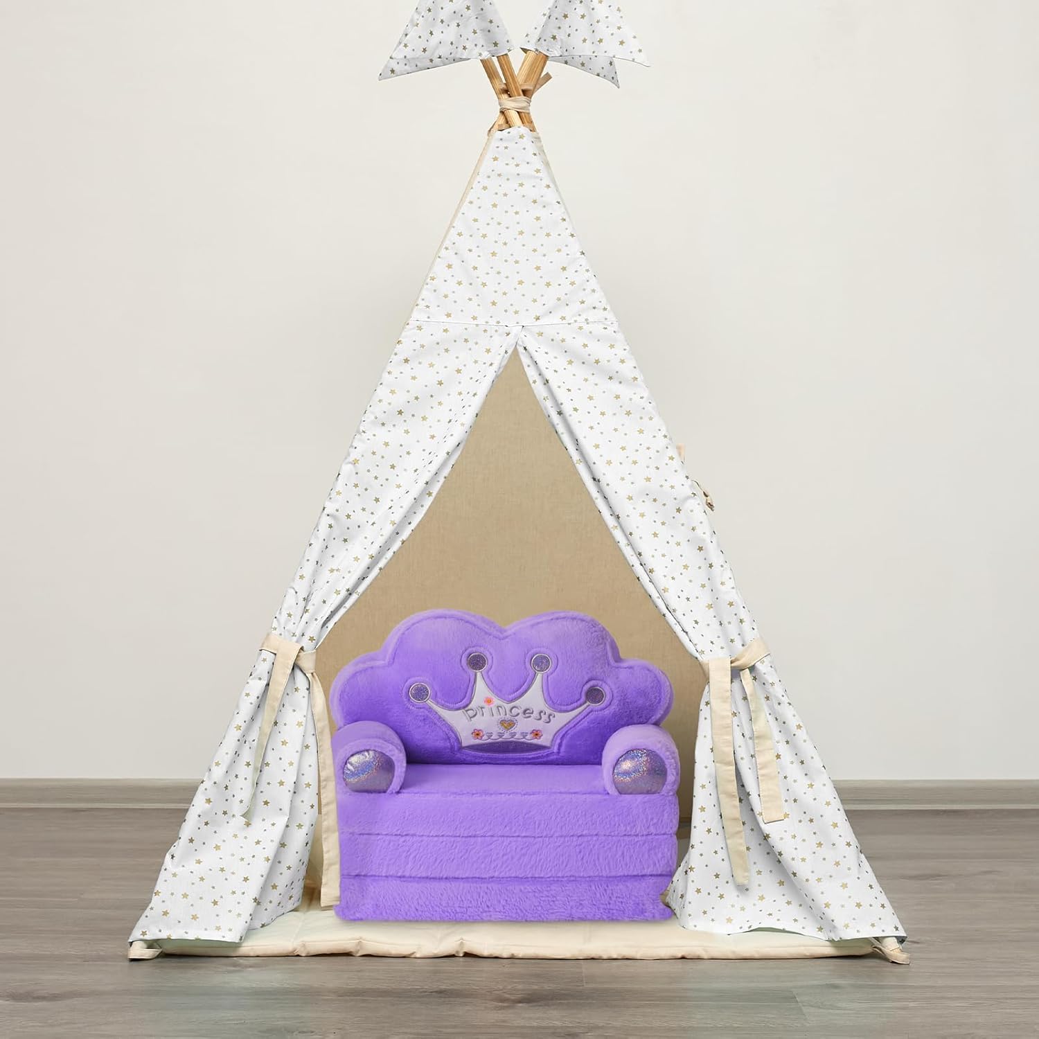 - ABOUT FABRIC: The fabric of the sofa is made of imitation rabbit fur fabric; which is soft and breathable; The sofa's crown look and sparkling embroidery design will be a hit with your little girl